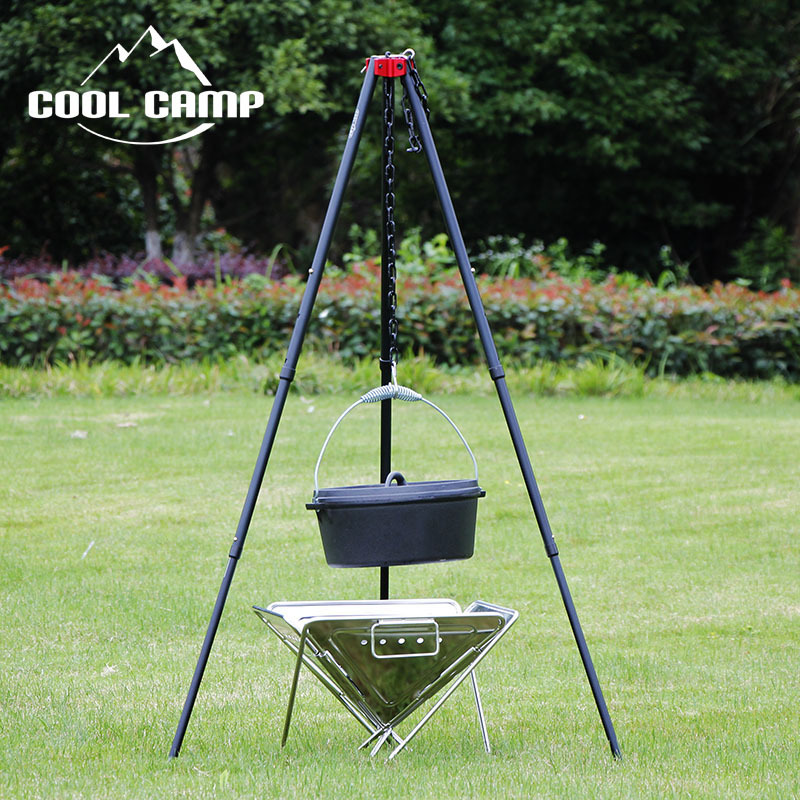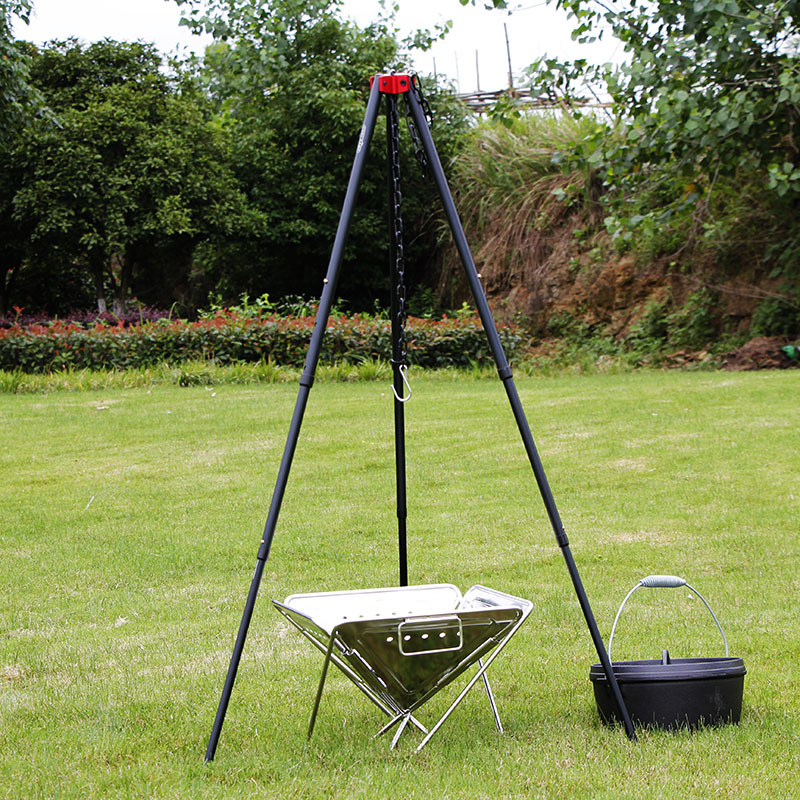 Outdoor Camping Light Stand Tripod Retractable Portable Hanging Pot Rack Picnic Barbecue Stand Campfire Rack Burning Fire Rack