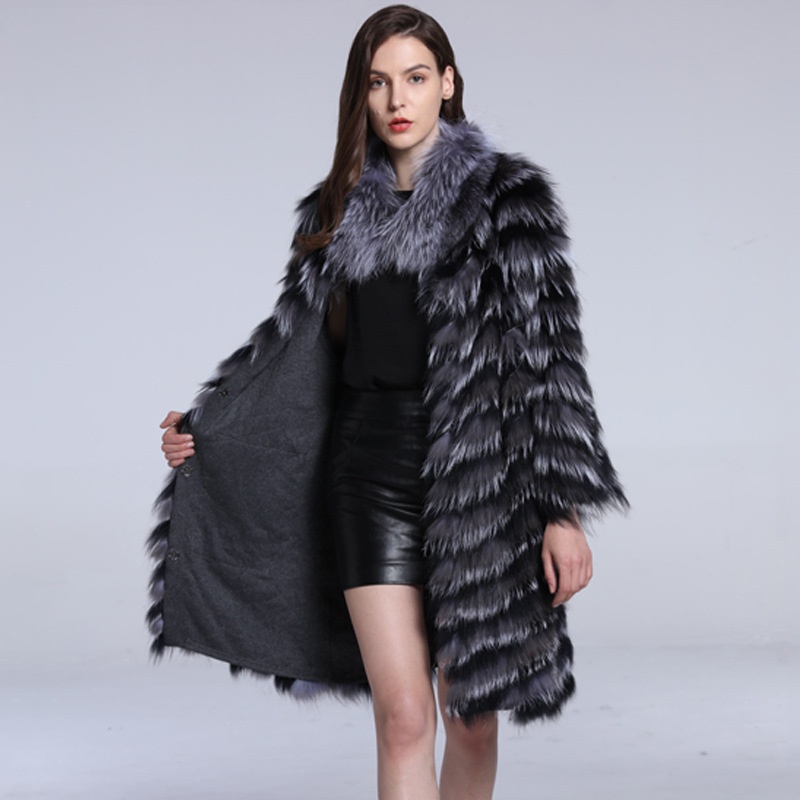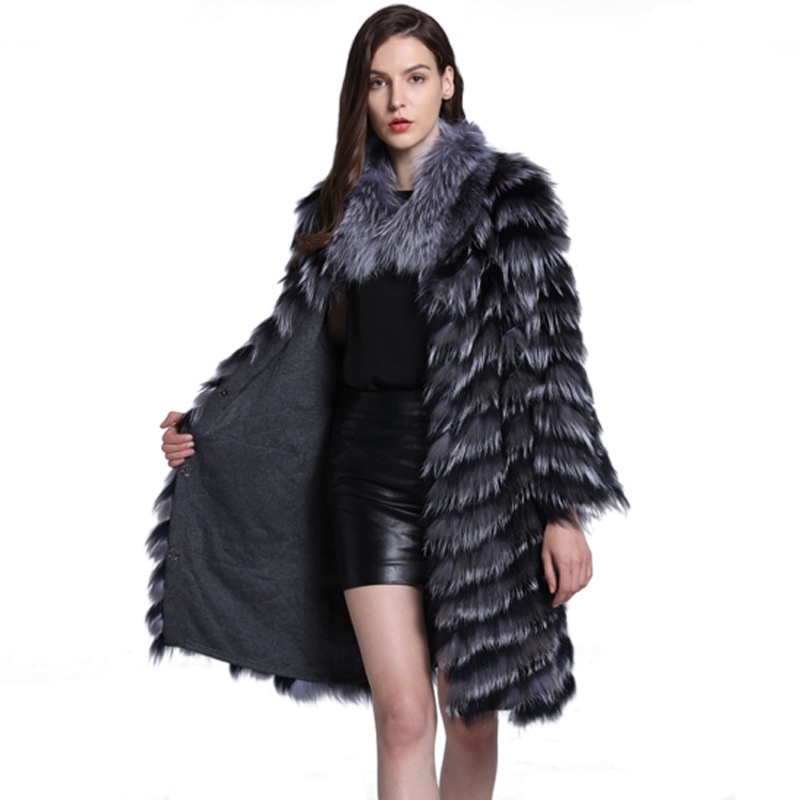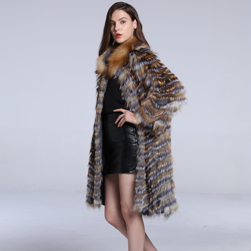 Style Fox Fur Long Fur Women's Autumn And Winter Warm Fur Coat Women's Coat Fox Fur Collar Coat Y