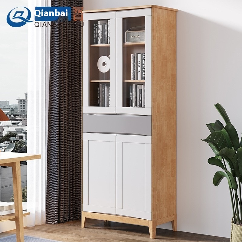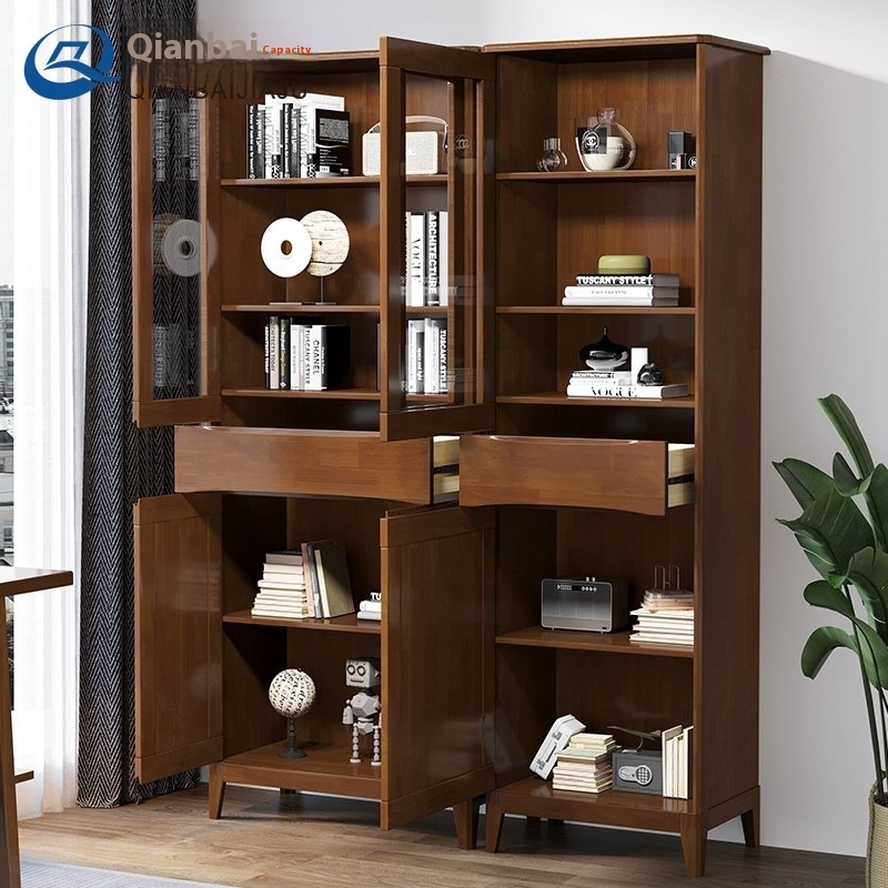 Modern Simple Solid Wood Cabinet Study Bookcase Combination Living Room With Glass Door Storage Cabinet Living Room All Solid Wood Display Cabinet
