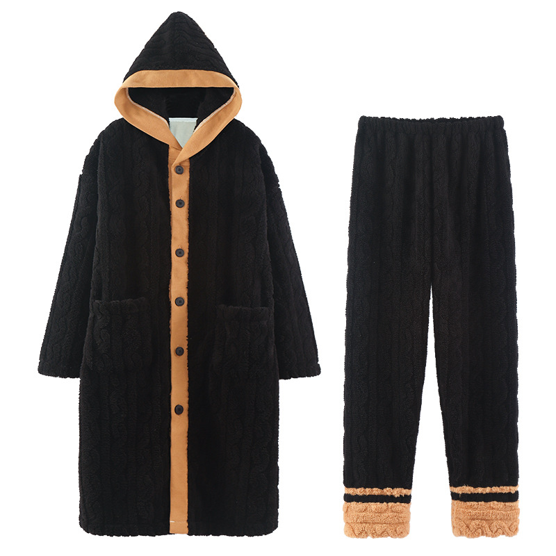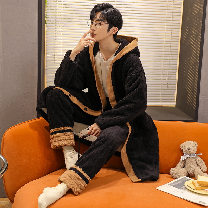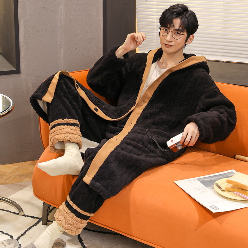 Jiaocaimeng Coral Velvet Pajamas Men's Winter Thickened Flannel Home Clothes Set Pajamas Casual Autumn And Winter
