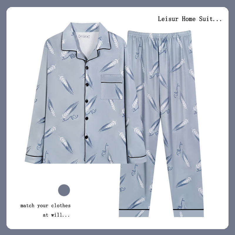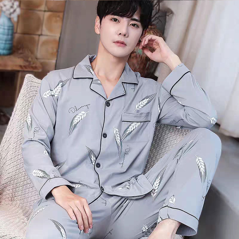 Spring And Autumn Pajamas For Men,High-quality Imitation Cotton Cardigan,Long-sleeved Trousers,High-end Loose Casual Home Wear Set