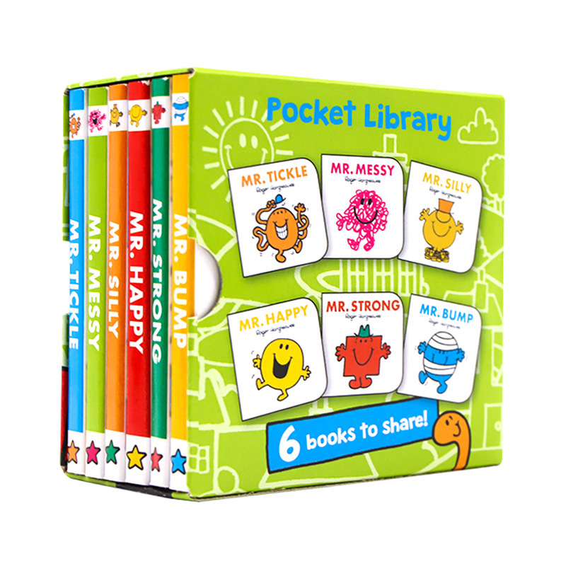 Mr Men Pocket Library English Version Picture Book Mr.Qi's Palm Book Box Set6 Volumes0-3 Years Old Cardboard