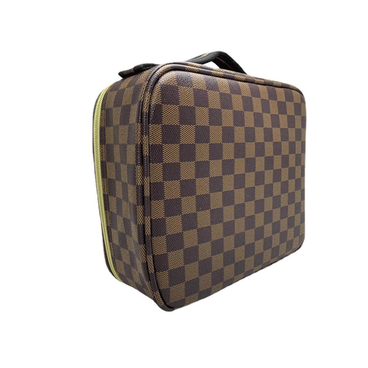 Direct Plaid Portable Storage Box Beauty Manicure Makeup Box Large Capacity European And American Cosmetic Bag Hand