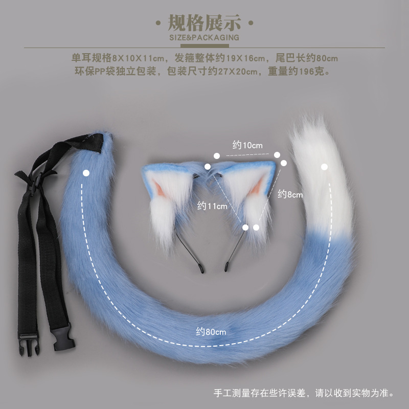 ADrop-shipping Handmade Japanese Cosplay Animal Ear Lolita Headdress JKAccessories Rem Cat Ears Headband Cat Tail
