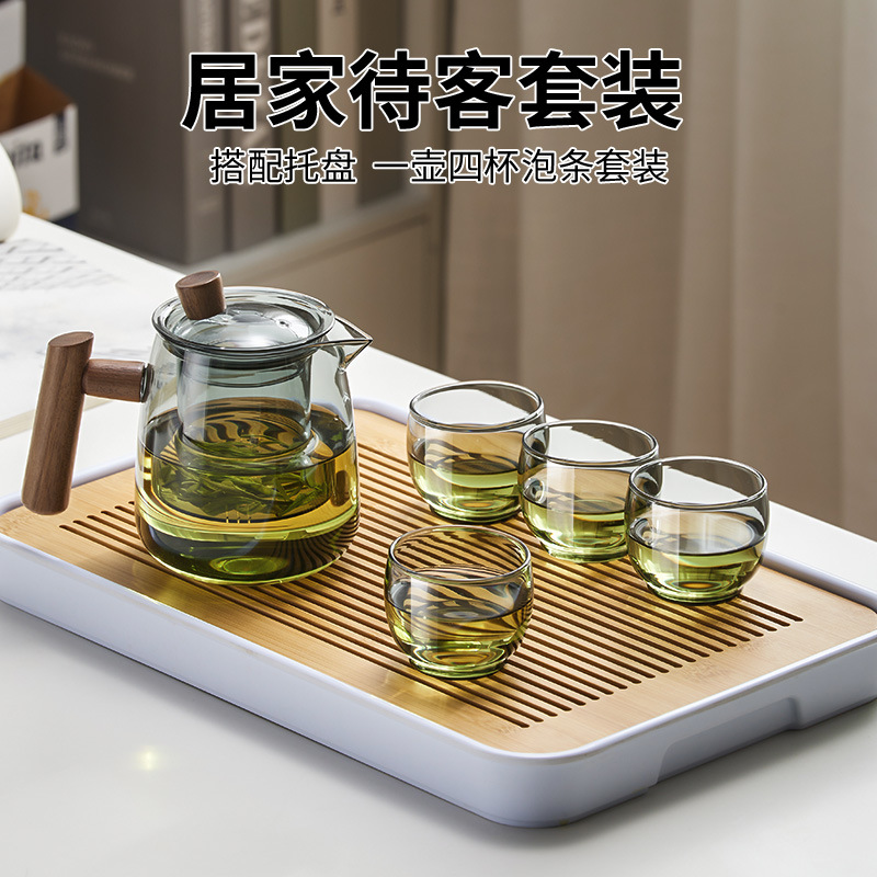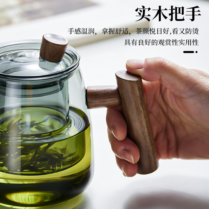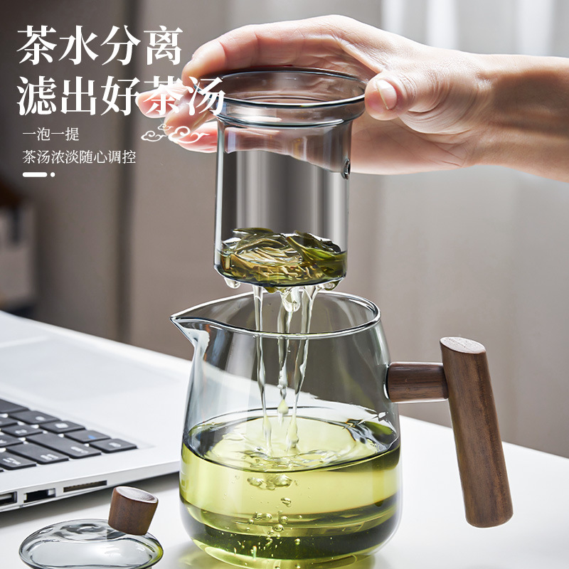 Tea Making Set,High-looking Household High Temperature Resistant Glass,Portable Tea And Water Separation Wooden Handle Glass Water Cup