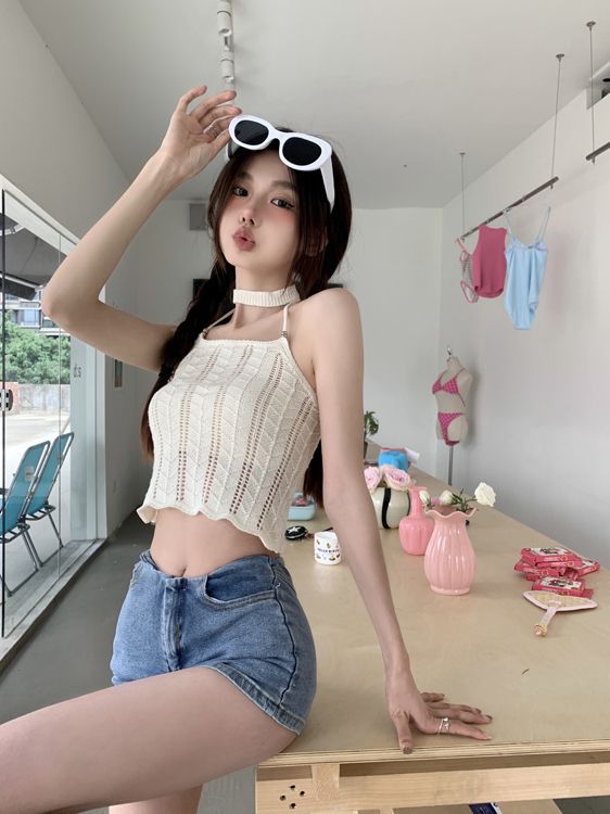Off-shoulder Short Sweet And Spicy Suspender Belt For Women Summer Sexy Halterneck Vest Slimming Navel Exposed Fashionable Sleeveless Topy