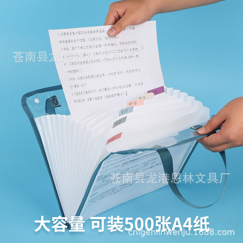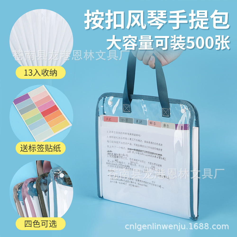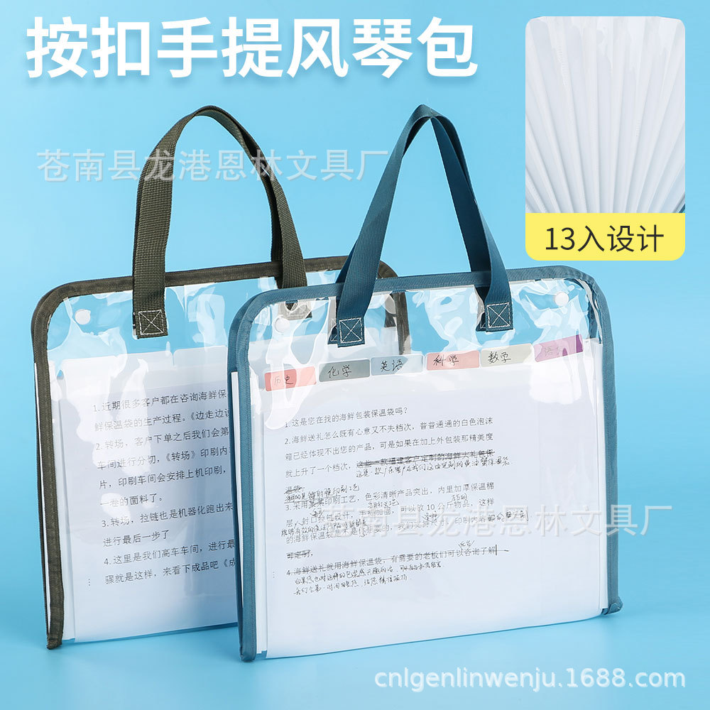 PVCPortable Accordion Bag Student Document Bag Test Paper Storage Bag13-grid Folder Subject Subject Classification Bag