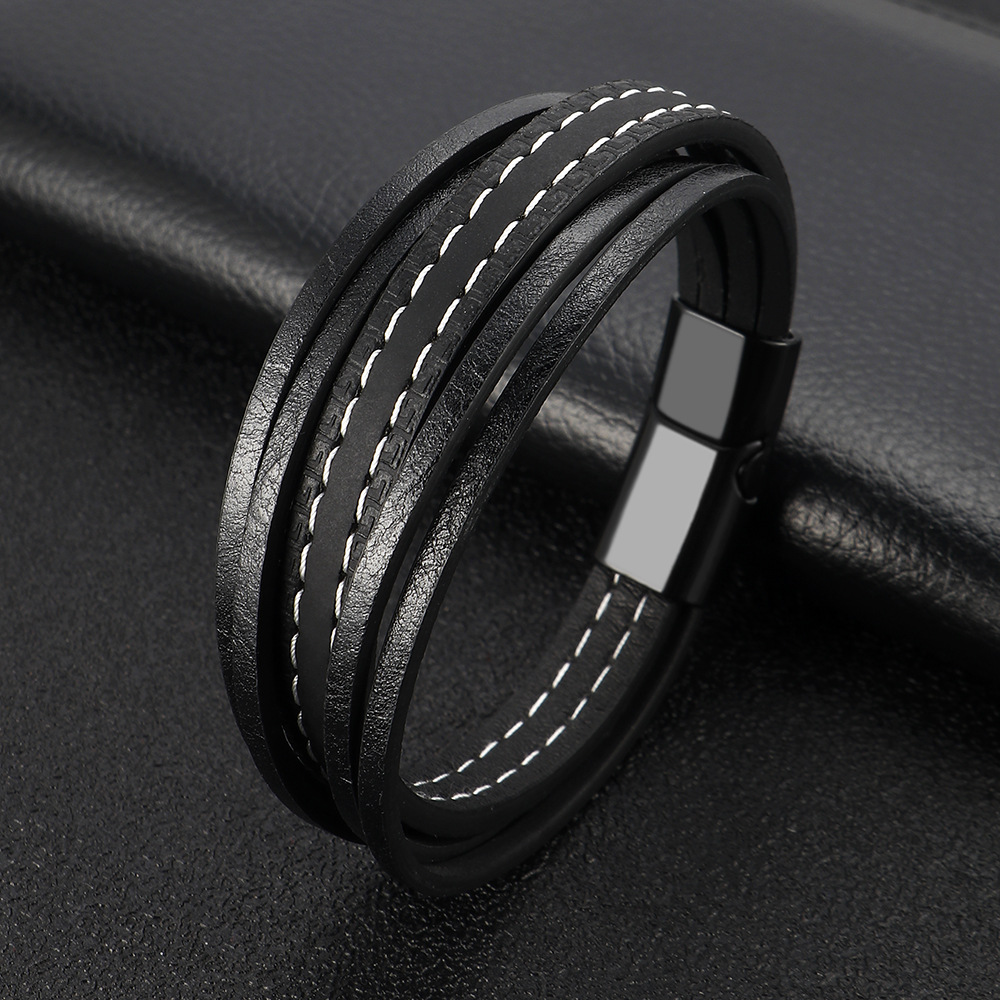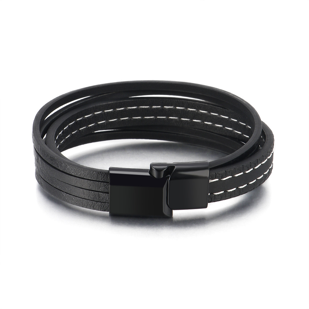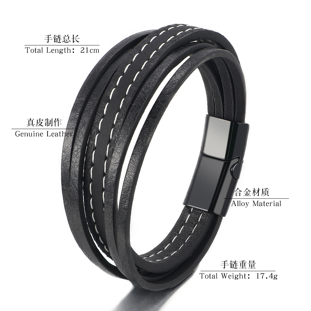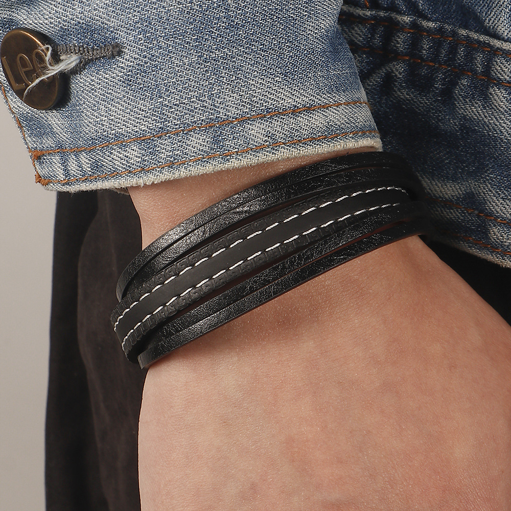 E-commerce European And American Windmill Line Cowhide Bracelet Men's Multi-layer Leather Braided Bracelet Ready For Sale