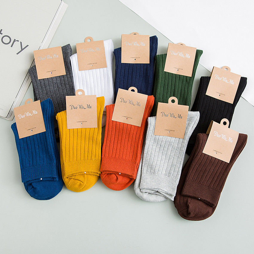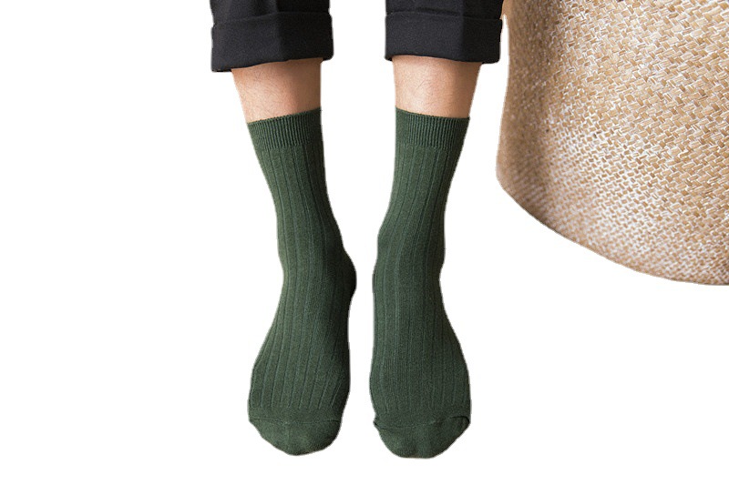 Zhuji Socks Men's Simple Style Winter44 Size Double Needle Cotton Men's Socks Vertical Strip Medium Tube Business Socks Men's Pure-Cotton