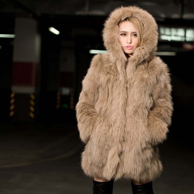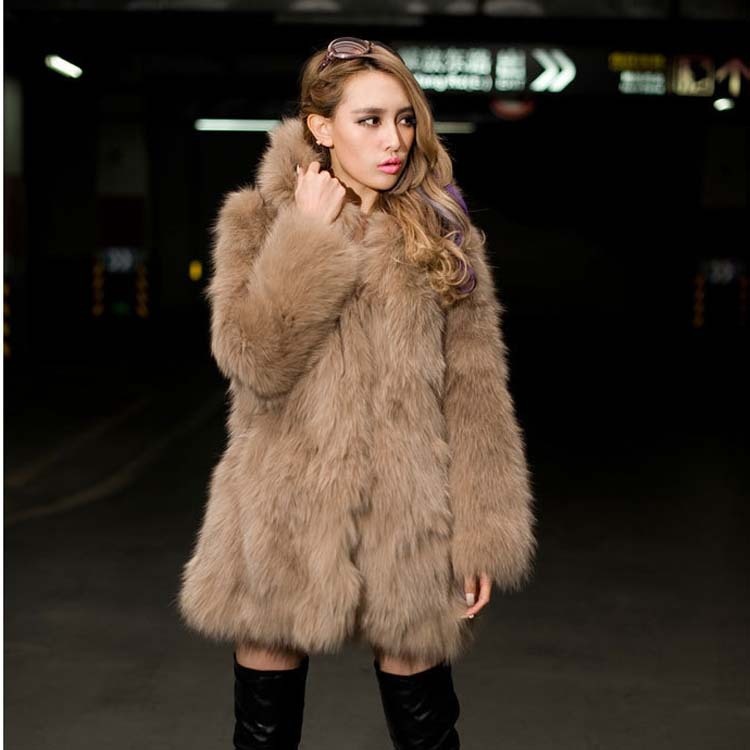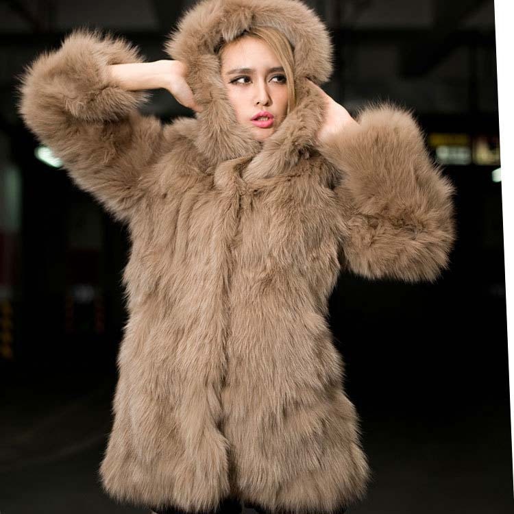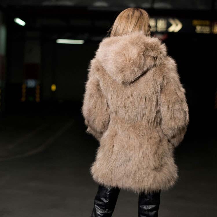 European And American Y Women's Fur Coat Imitation Fox Fur Mid-length Hooded Coat Thickened Warm Fashionable Wool Sweater