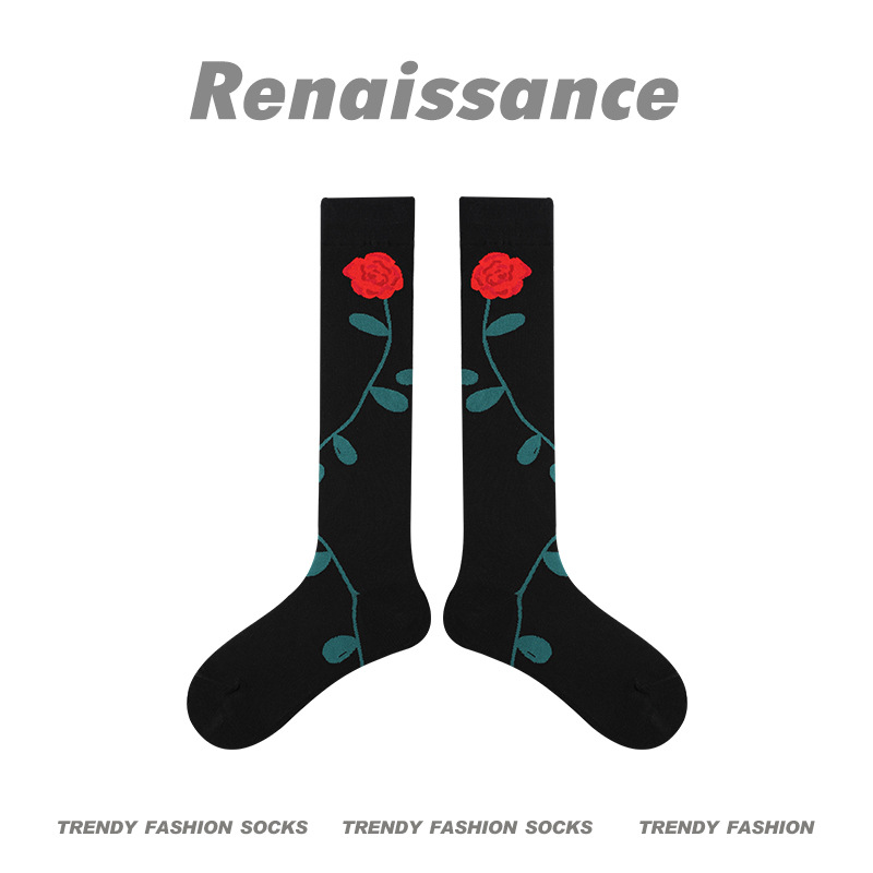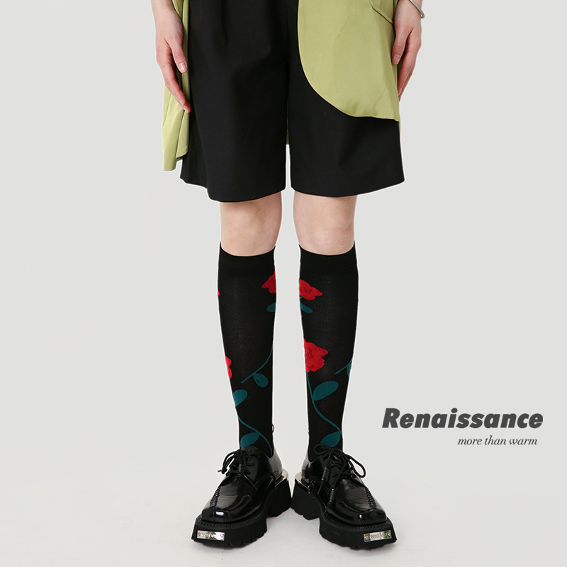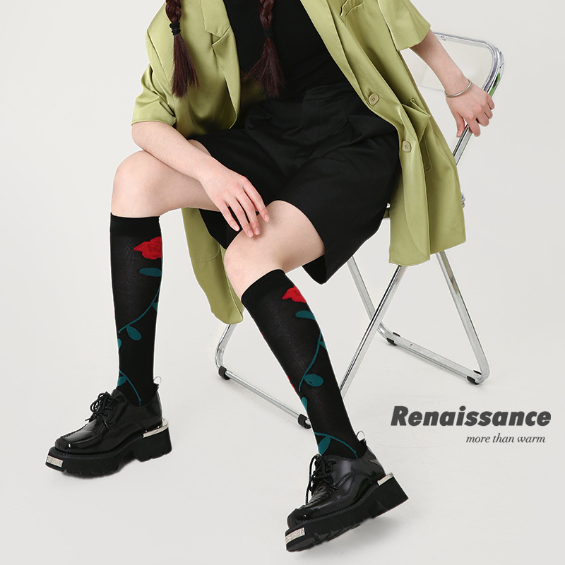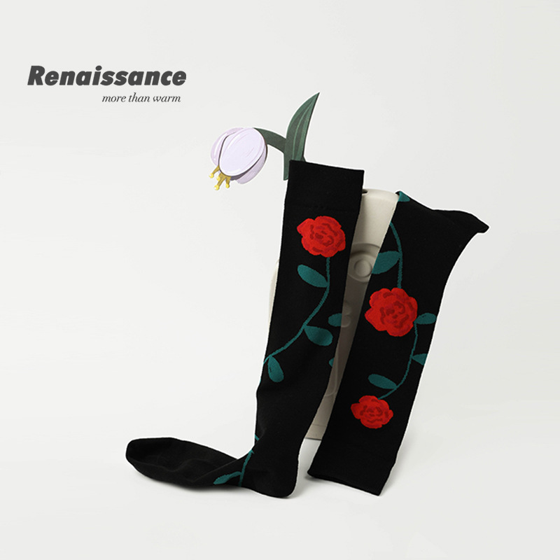 Renaissance Original Women's Socks Spring And Summer Simple Stockings Girls Flower Calf Socks Pastoral Style Knee-length Socks For Women