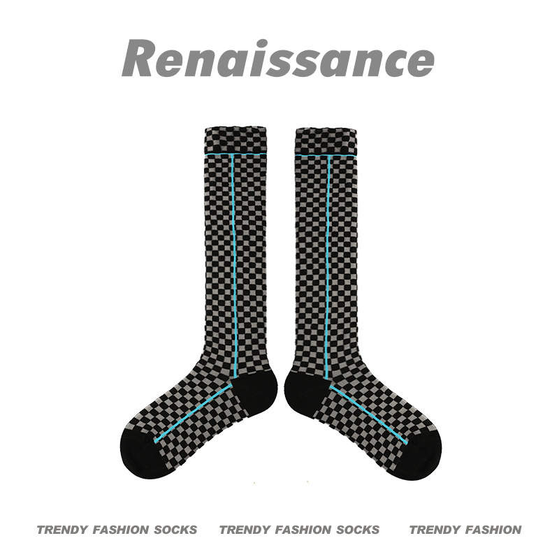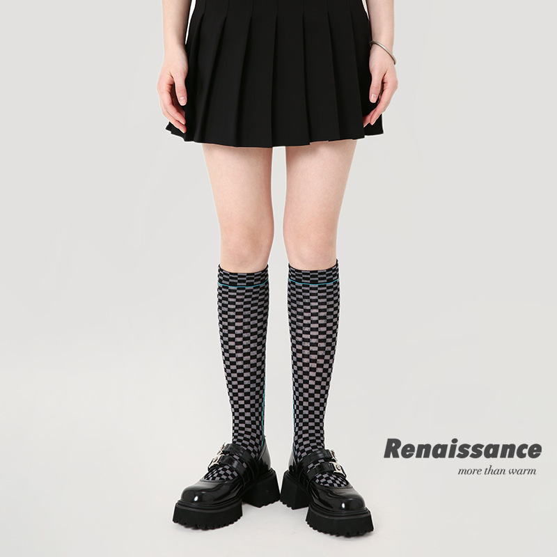 Renaissance Original Women's Socks Spring And Summer Simple Plaid Mid-length Socks Calf Socks Versatile Pile Socks For Women