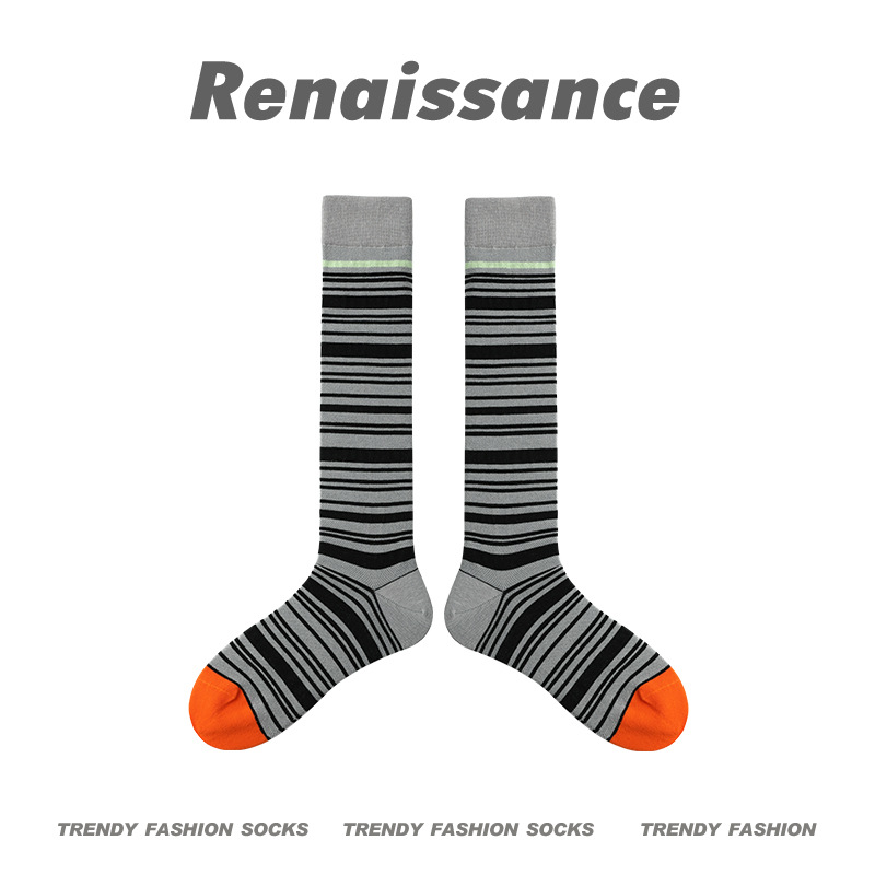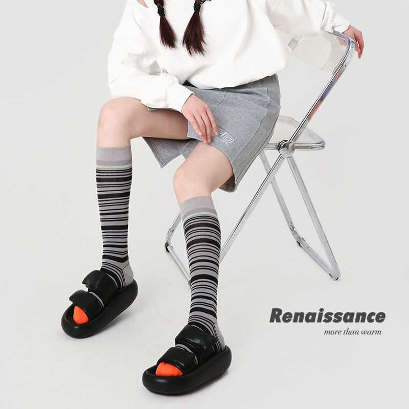 Renaissance Original Women's Socks,Simple Mid-length Socks,Color-blocked Striped Calf Socks,Versatile Slimming Knee-high Socks For Women