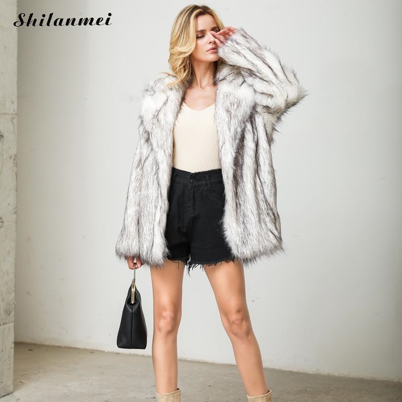 Winter Faux Fur Coat Women's Suit Collar Long Sleeve Street Style Faux Fur Coat Thickened And Warm