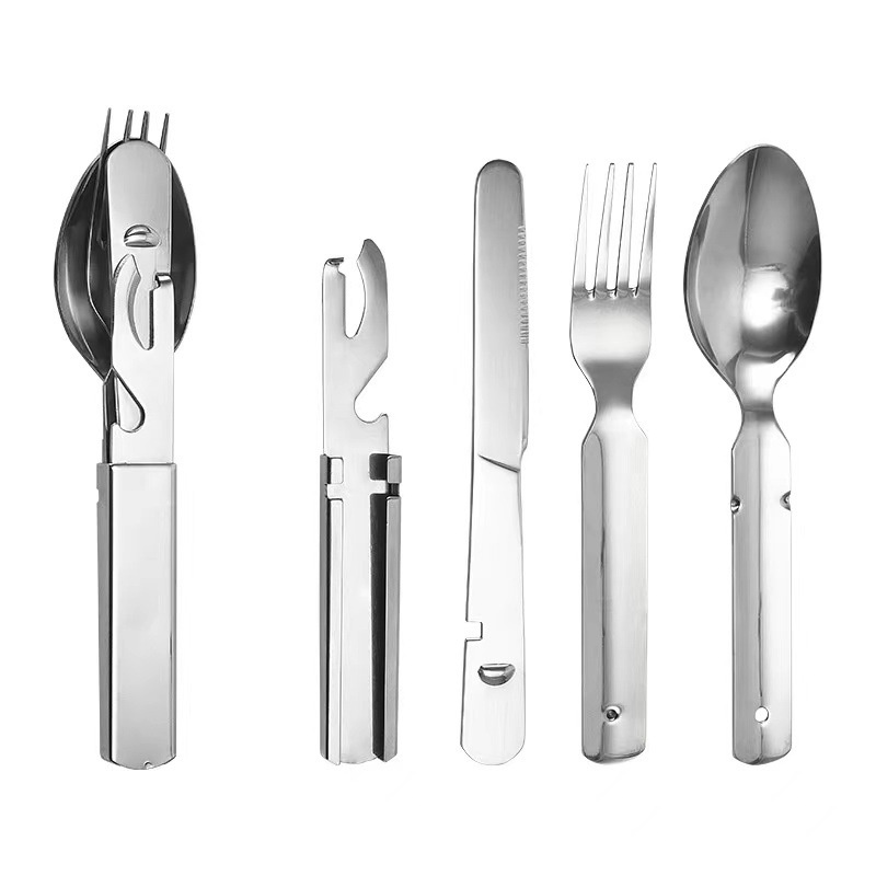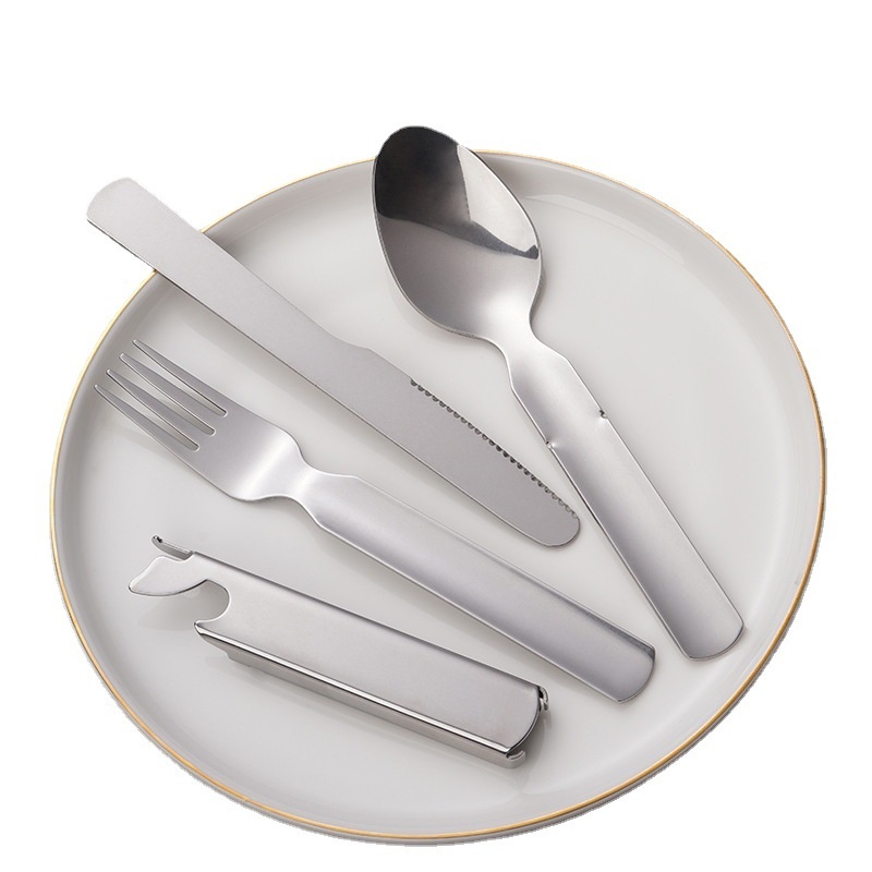 Stainless Steel Tableware Outdoor Camping Portable Tableware Set Western Food Knife, Fork And Spoon Four-piece Set Folding Storage Tableware