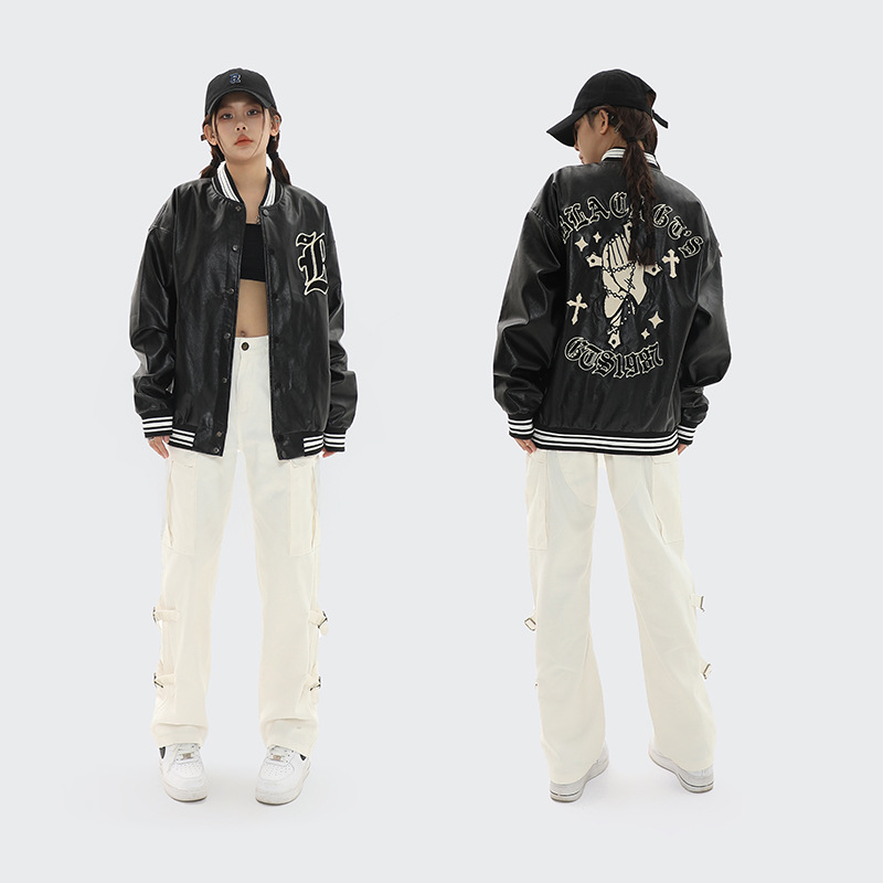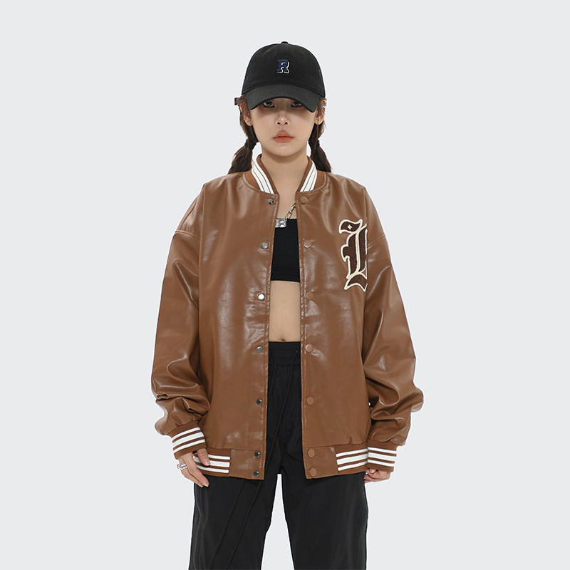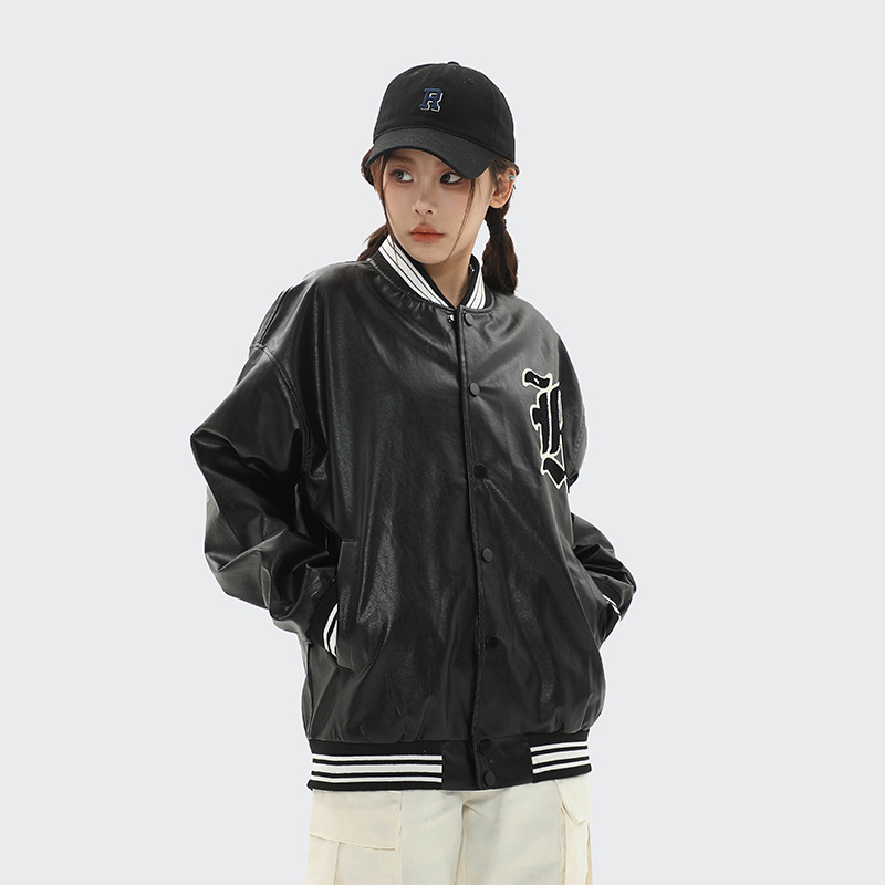 OREETAAmerican Motorcycle Cross Baseball Jacket Men And Womeny Brand Loose Couple Leather Jacket