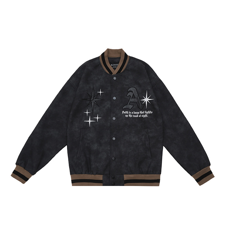 OREETAMen's Autumn American Retro Letter Embroidered Loose Baseball Jacket Men's Blacky Jacket