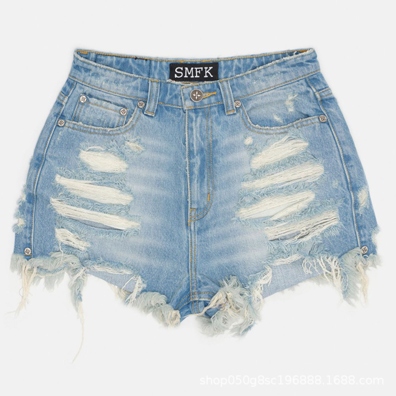SMFKRetro Snowflake Denim Shorts With Old Design High-waist Hottie Super Shorts For Women Spring And Summer