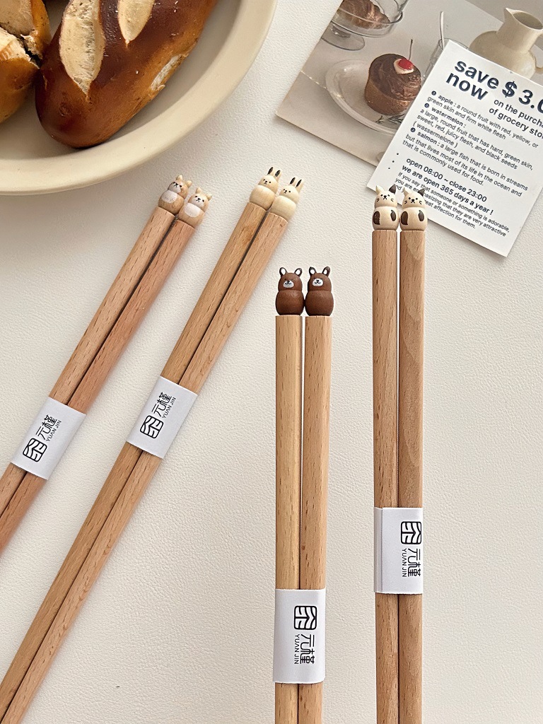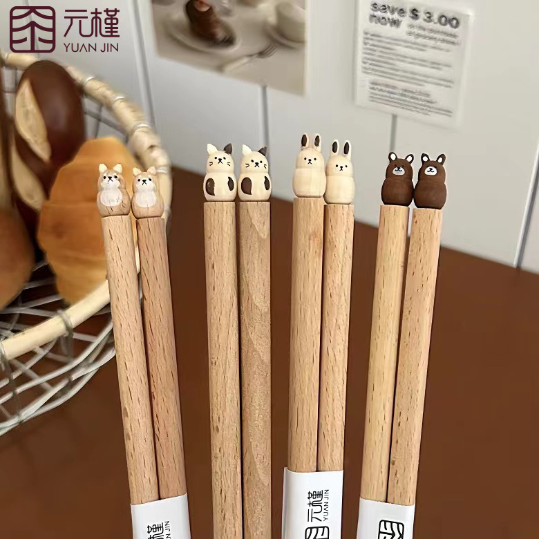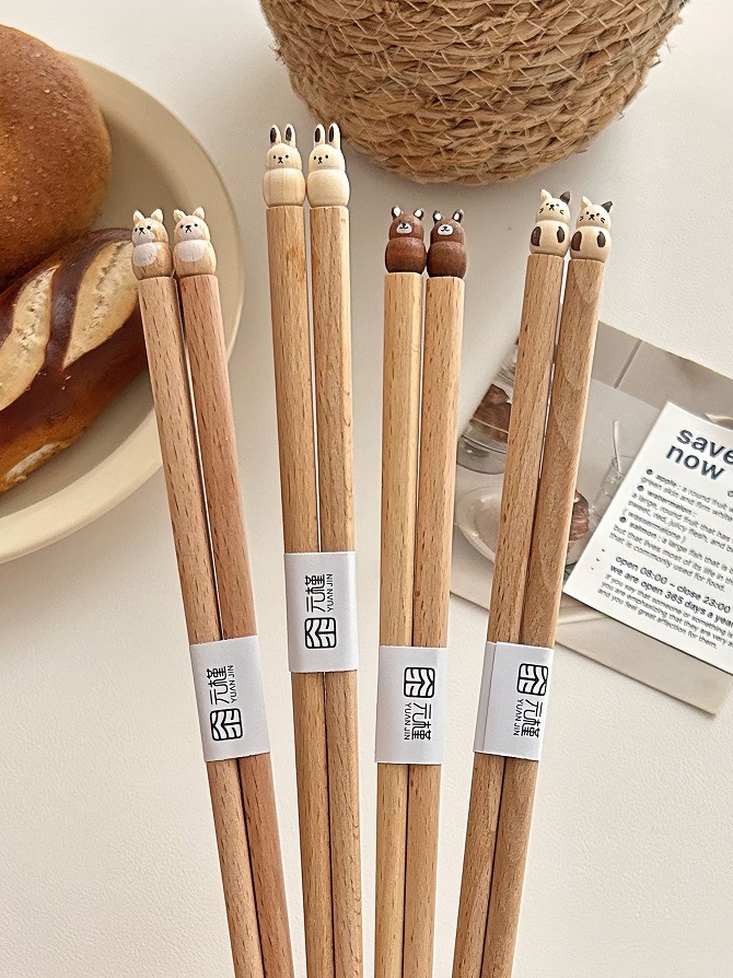 [Yuanjin Bamboo]Cute Cartoon Beech Wood Chopsticks Three-dimensional Handmade Products Copyright Products Peer Self-respect