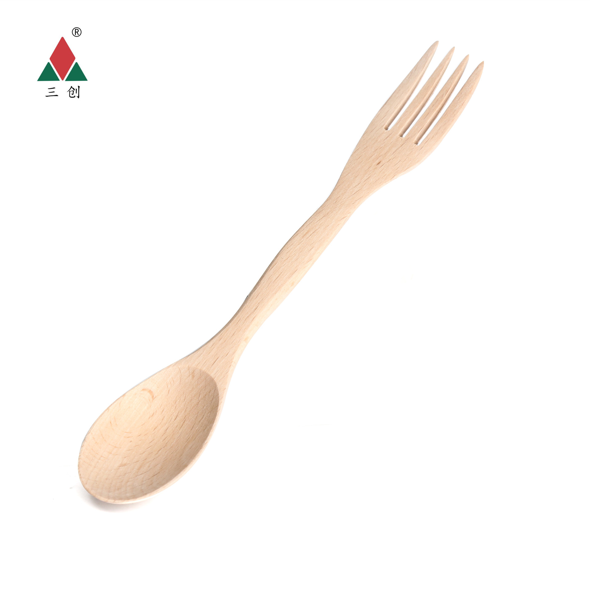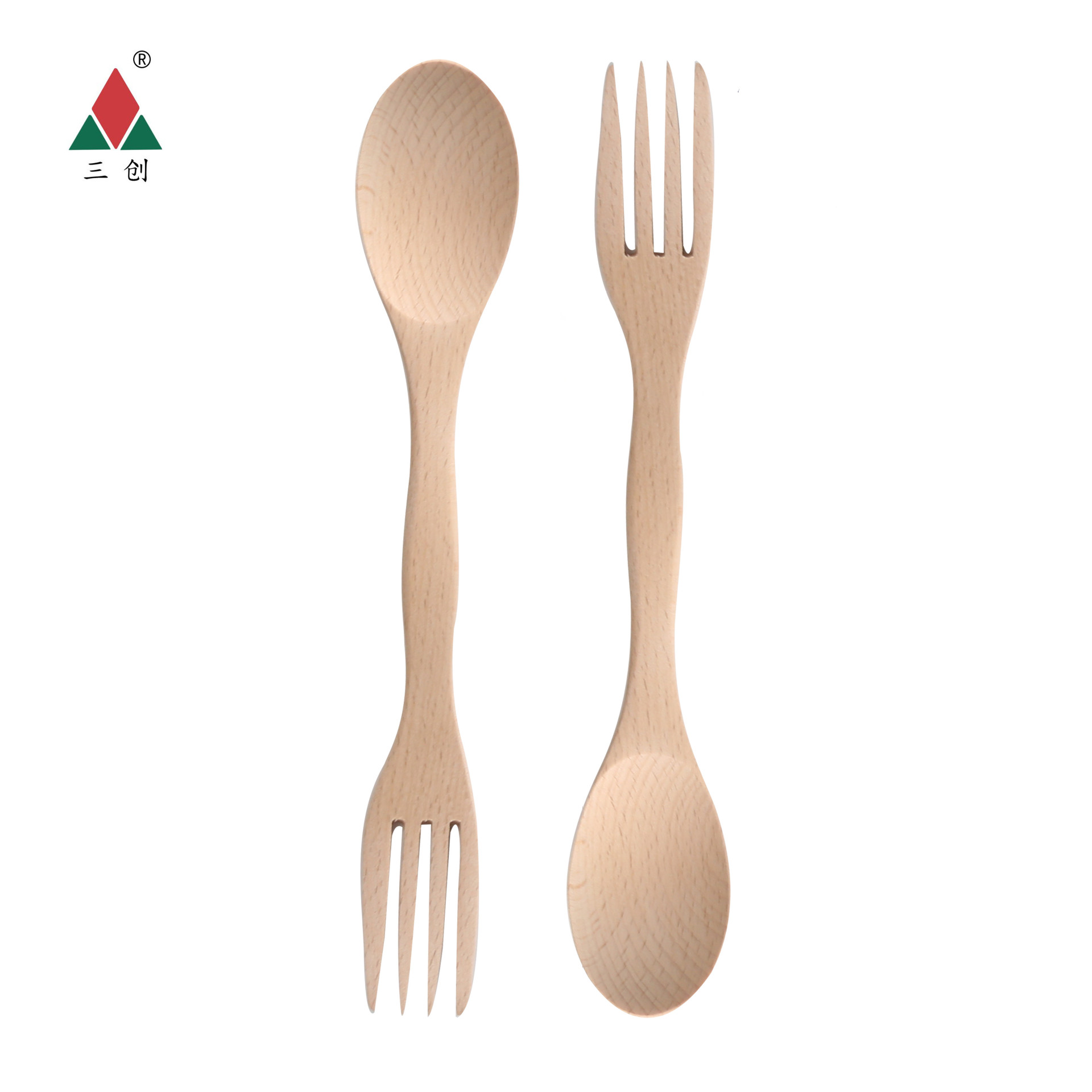 Beech Creative Household Spoon And Fork Integrated Kitchen Tableware Wooden Fruit Fork Wooden Spoon Fork Spoon
