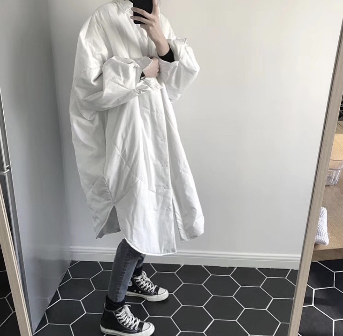 Louvre Winter Korean Fashion Design Simple Lapel Comfortable Super Loose Long Cotton Jacket For Women