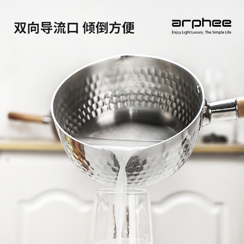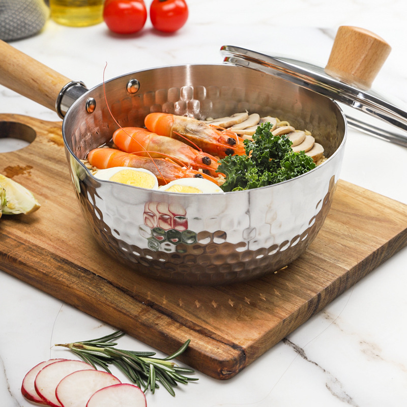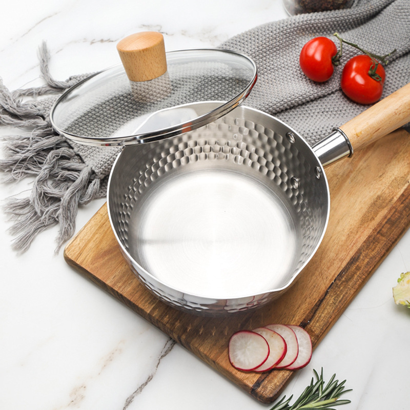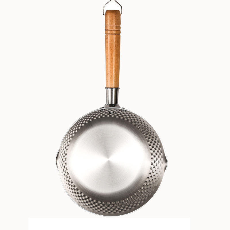 304 Stainless Steel Japanese-style Snow Pan Thickened Flat Bottom Soup Pot Uncoated Wooden Handle Milk Pot Household Baby Food Pot