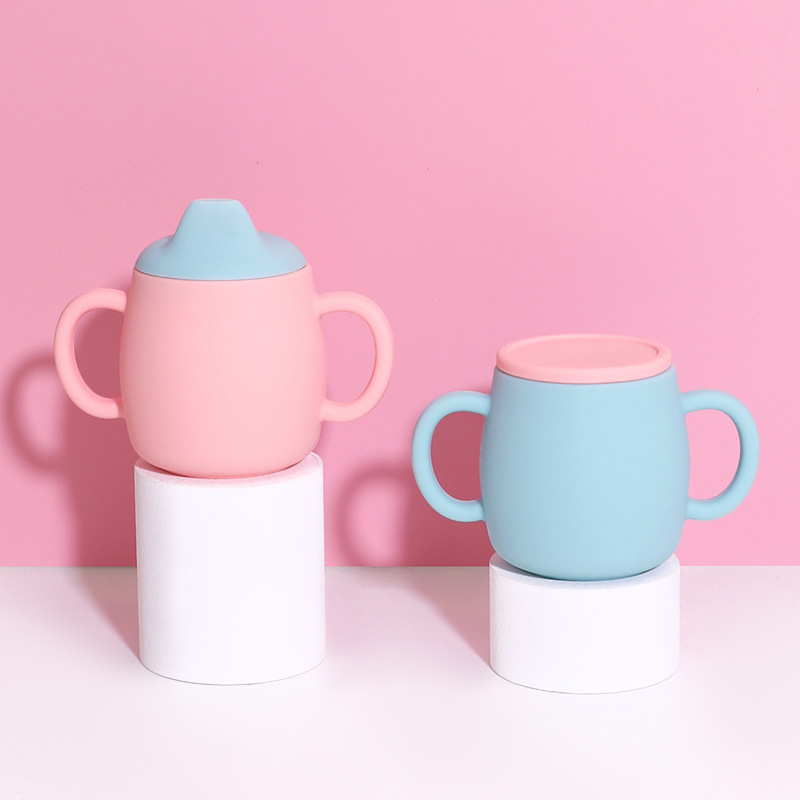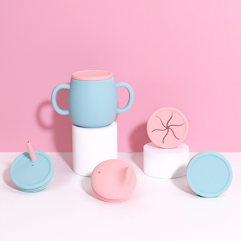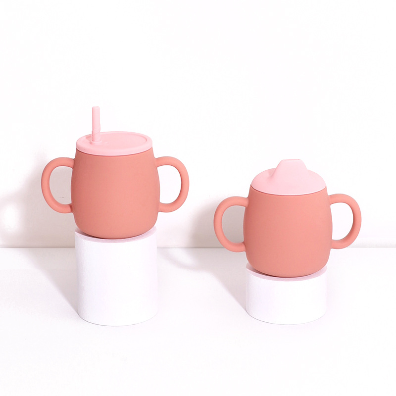 Silicone Straw Water Cup Nordic Color Baby Growth Silicone Training Cup Baby Training Water Cup With Lid