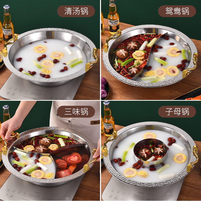 Yiboshi Hot Pot Commercial Stainless Steel Hot Pot Basin304 Food Grade Mandarin Duck Pot Induction Cooker Gas Stove Universal