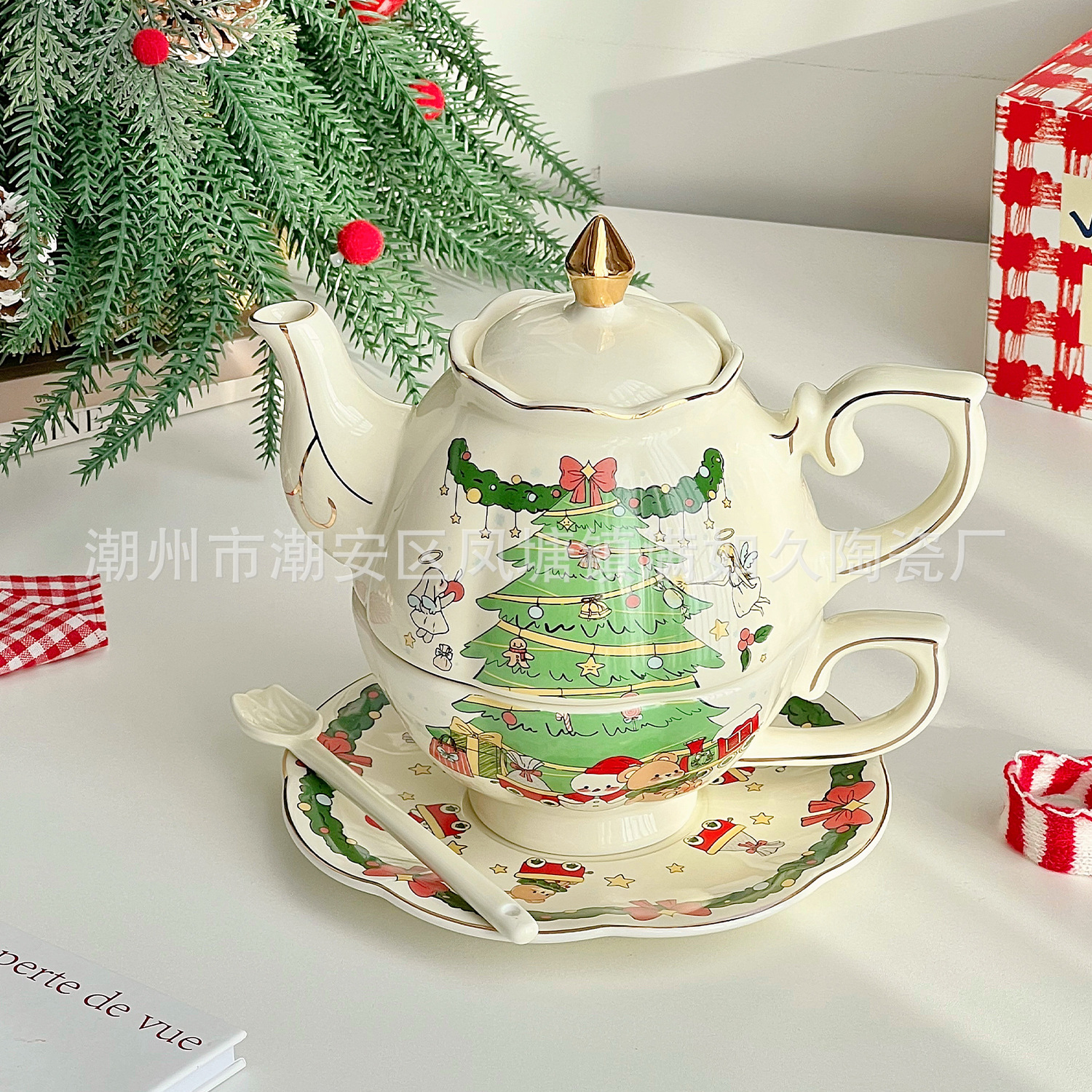 Slow As Ever-Christmas Limited Edition Ceramic Pot Coffee Cup And Saucer Set For Girls,High-looking Gift,Cute And High-end