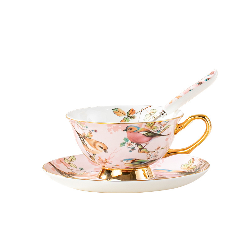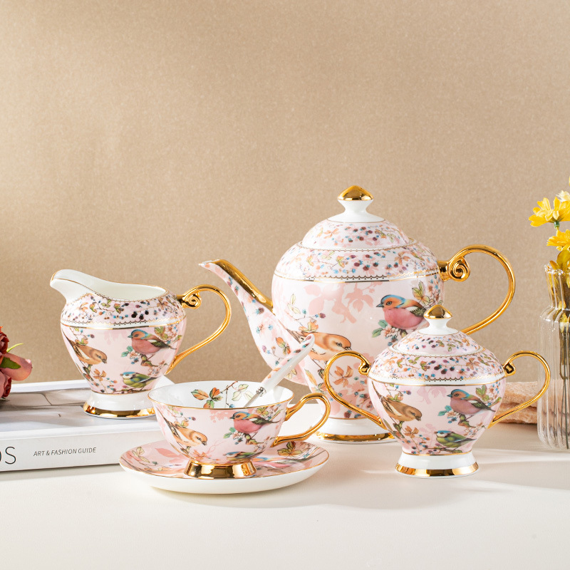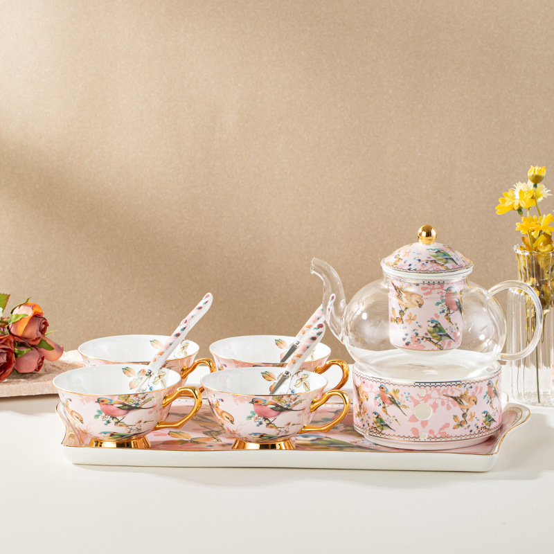 Pastoral Style European Bone China Coffee Cup And Saucer Tea Set British Ceramic Afternoon Tea Black Teapot Cup With Tray