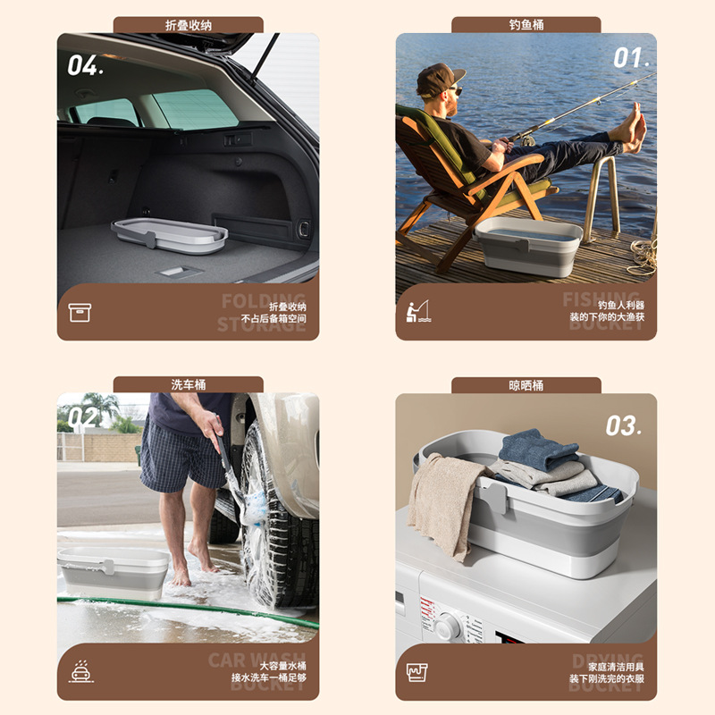 Car Wash Bucket Portable Folding Bucket Car-mounted Special Plastic Bucket Shrinkable Outdoor Brush Car Fishing Soft Bucket