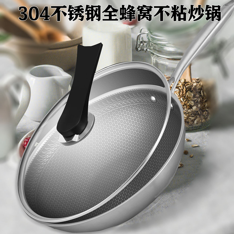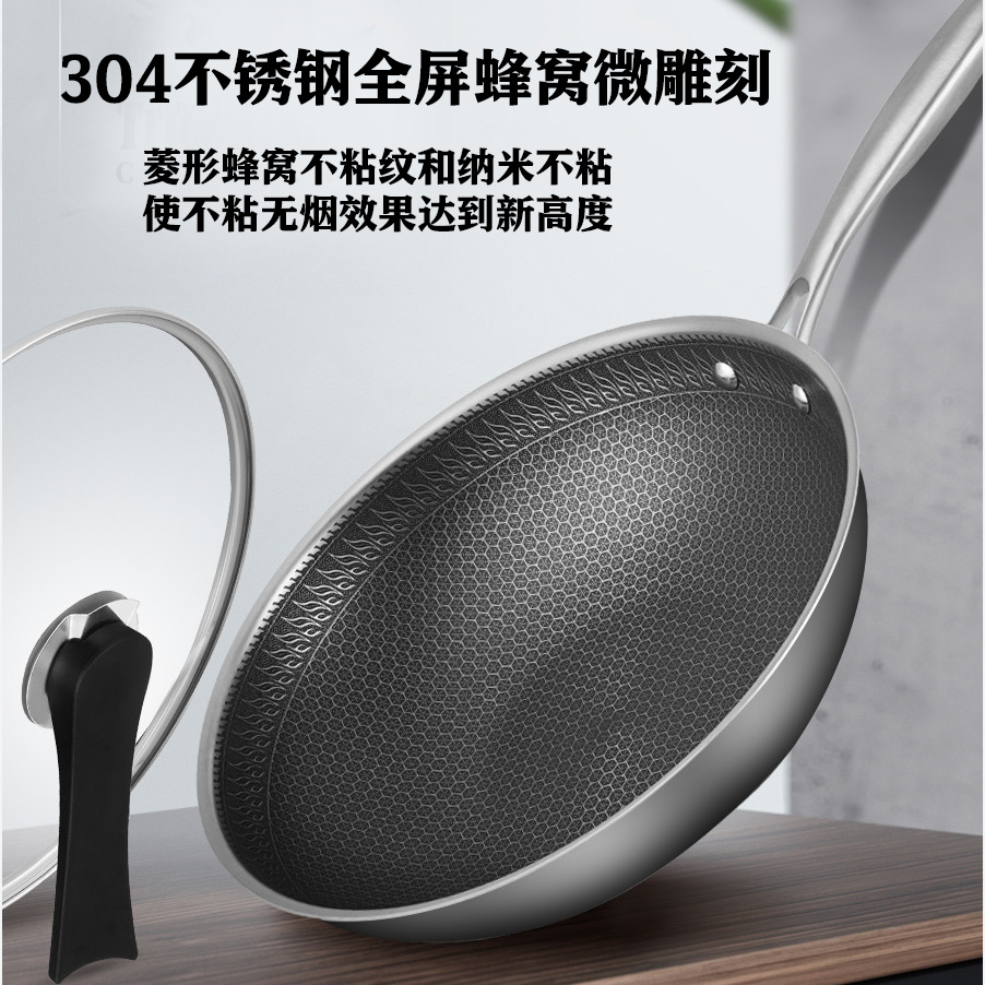 Lannuo304 Stainless Steel Wok Household Non-stick Pan Wok Cooking Pot Induction Cooker General