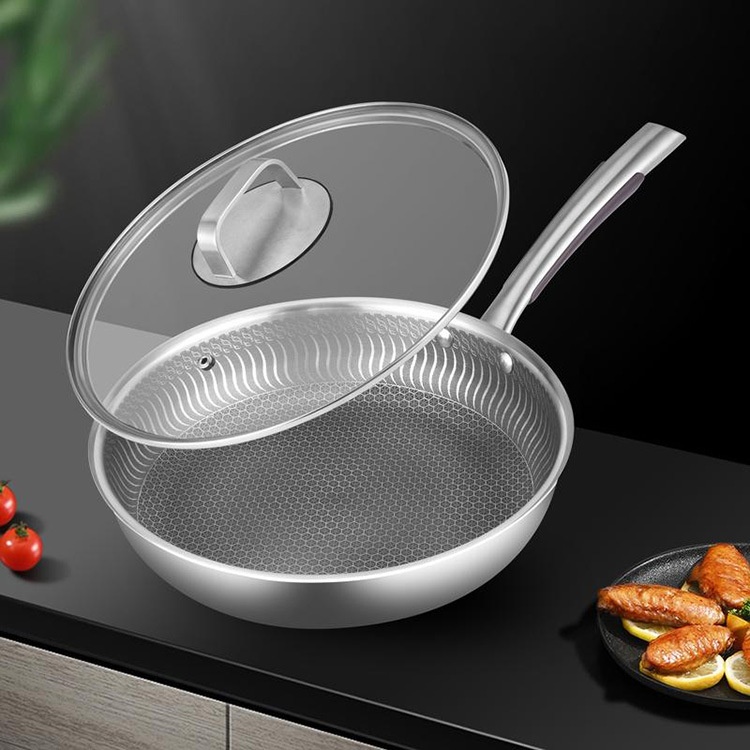 Flat-bottomed Frying Pan304 Stainless Steel Steak Pan Household Multi-functional Wok Wok Non-stick Pan Direct