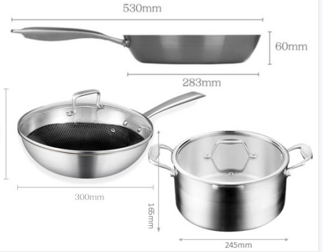 Gift Household304 Stainless Steel Pot Set Wok Soup Pot Frying Pan Three-piece Set Kitchen Kitchenware Set Cooking Utensils