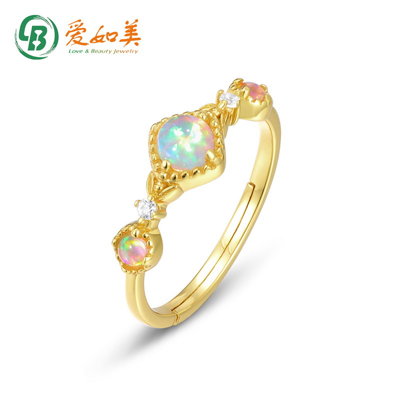 Japanese And Korean Fashion Personalized Artificial Opal Ring S925 Sterling Silver Gold-plated Ring For Women Drop Shipping