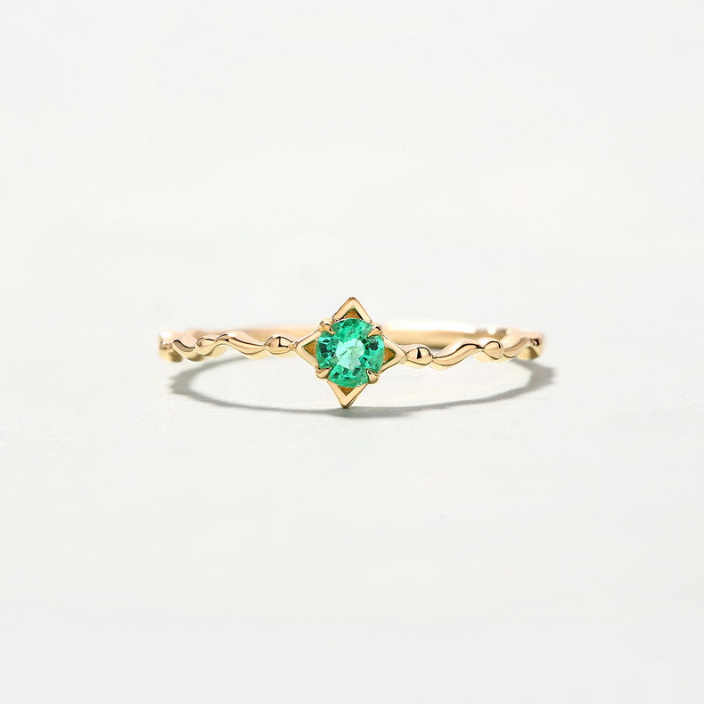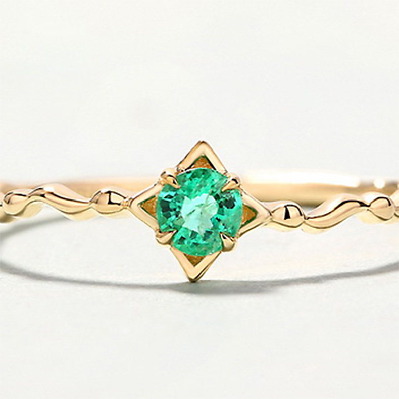Japanese Jewelry Niche Design14k Gold Gemstone Emerald Ring Female Fashion Simple Jewelry
