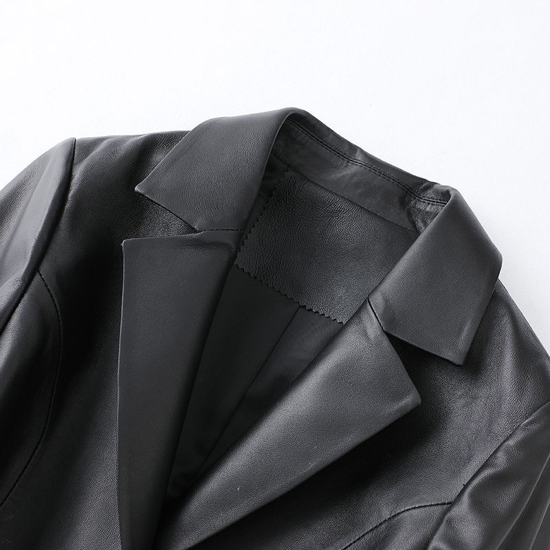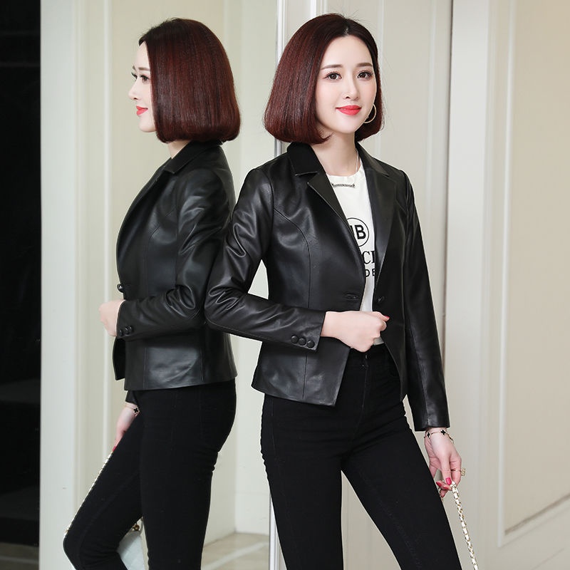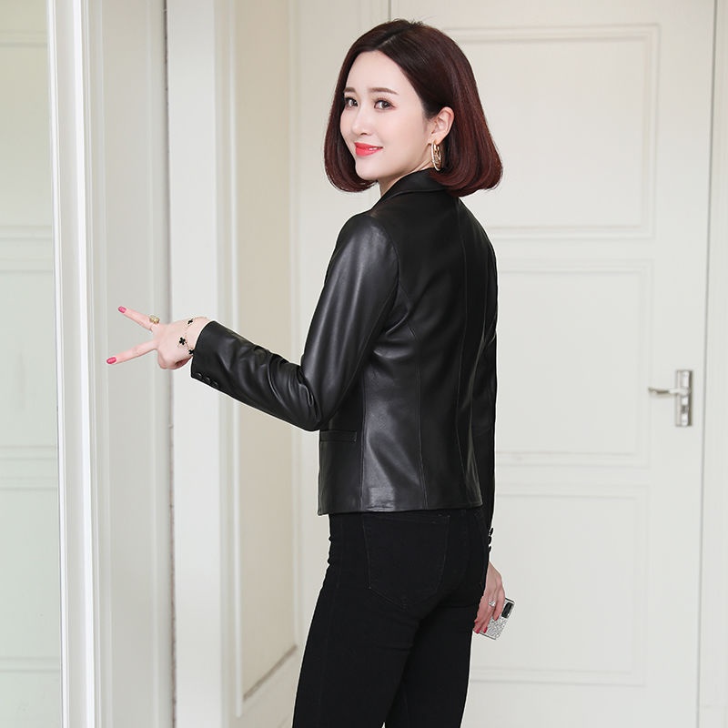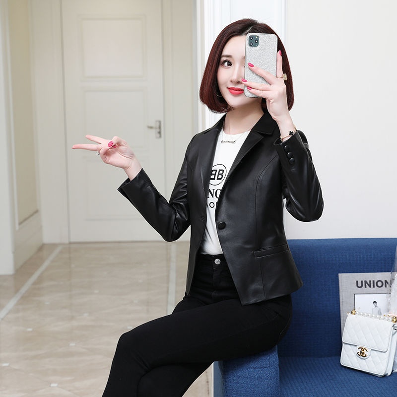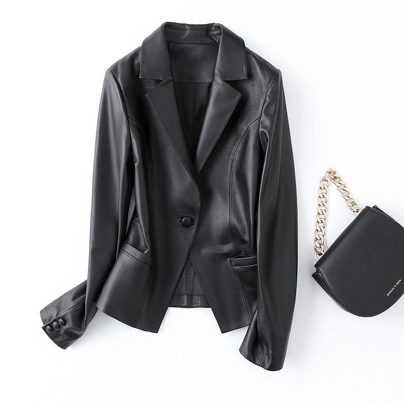 Sheepskin Spring Haining Genuine Leather Jacket Women's Short Small Suit Korean Style Slim Single Leather Jacket