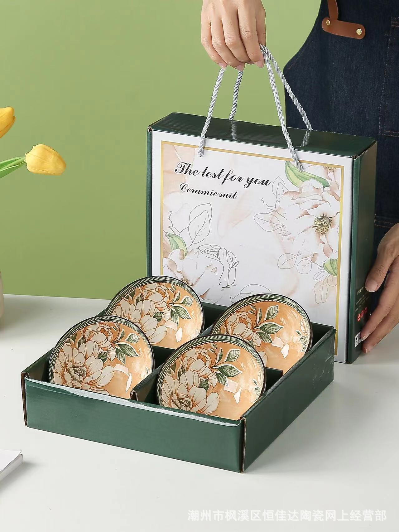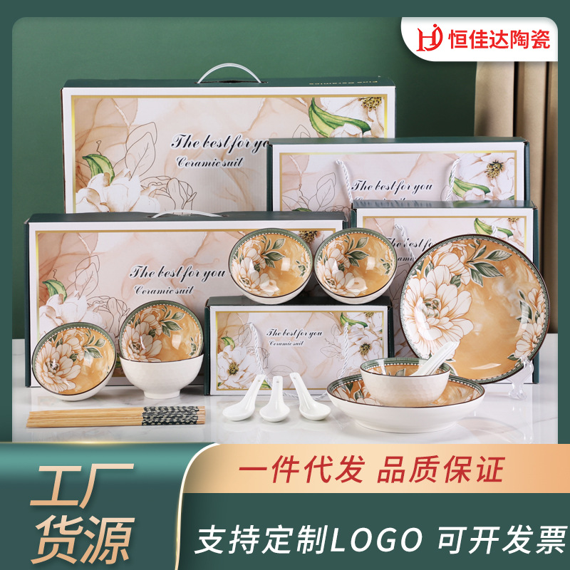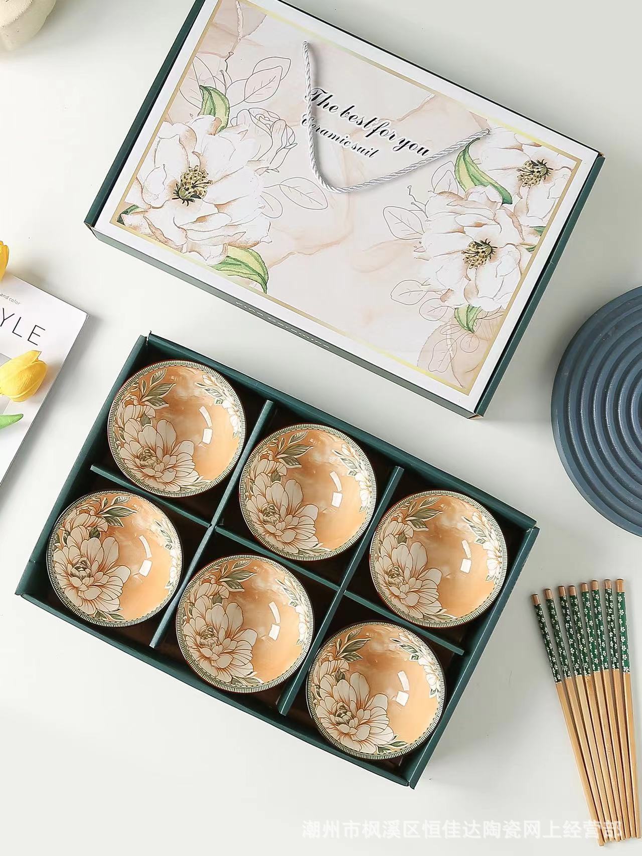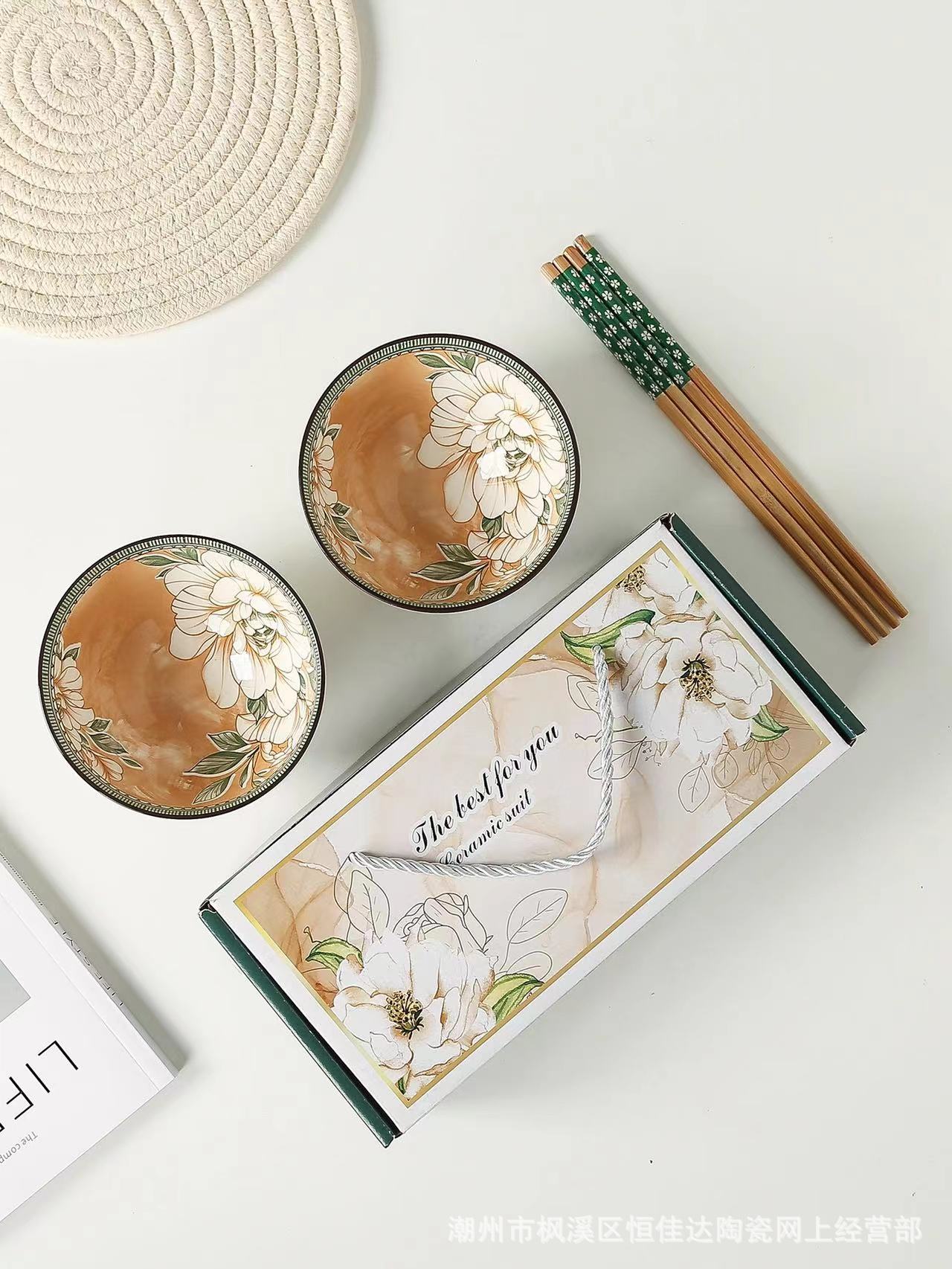 Internet Celebrity Camellia Ceramic Bowls And Chopsticks Set Gift Box Tableware Opening Event Souvenirs Home Company Gifts