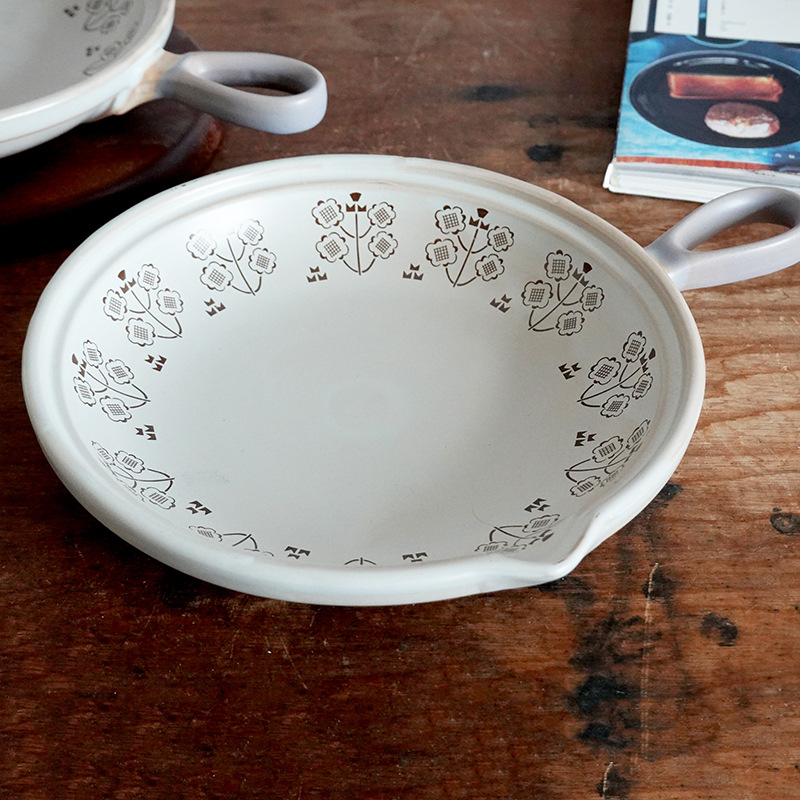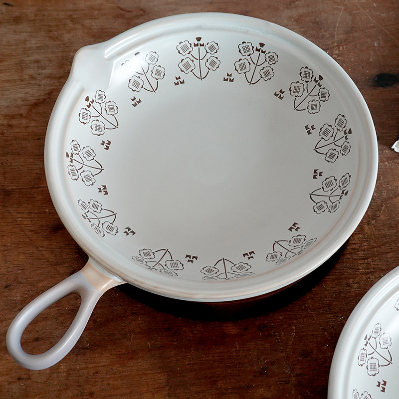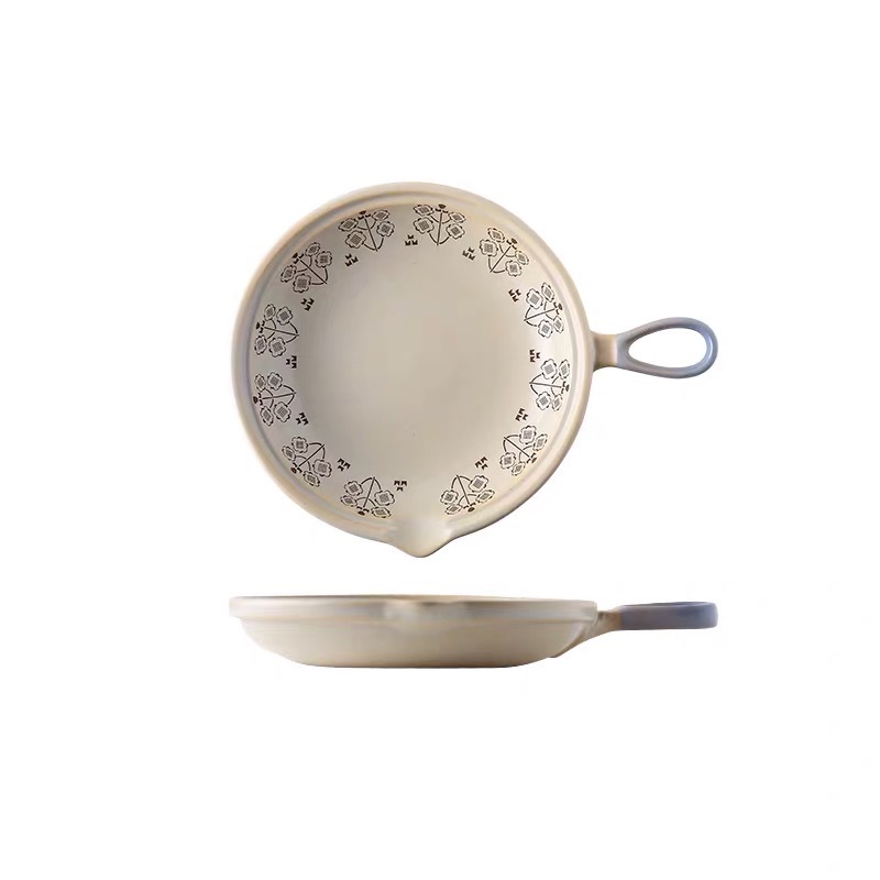 Japanese Breakfast Plate Steak Plate Ceramic Flat Bottom Casserole Can Open Flame Gas Handle Pot Omelette Pot