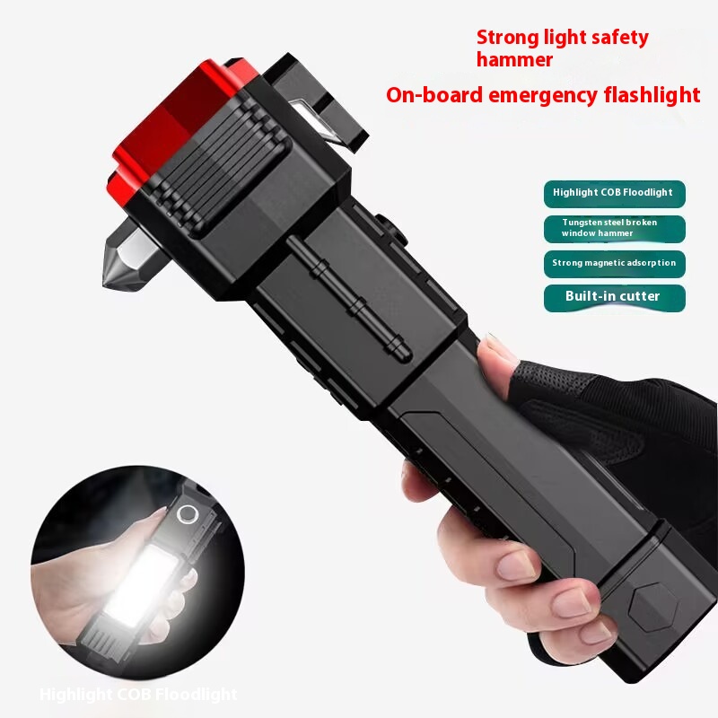 Car Bright Flashlight U S B Multi-function Window Breaking Hammer Magnet Cutting Seat Belt C O B Rechargeable Emergency Light