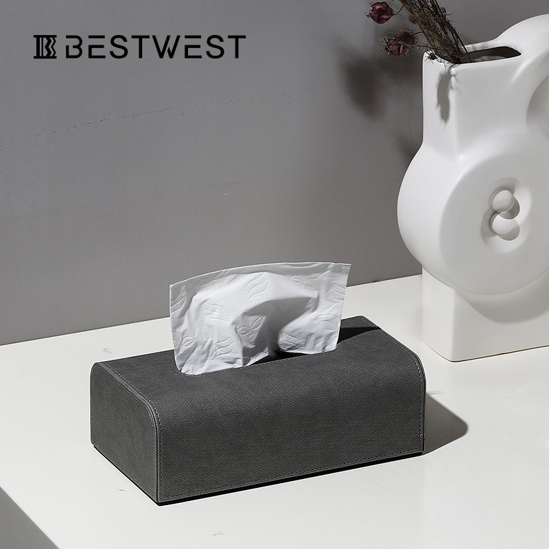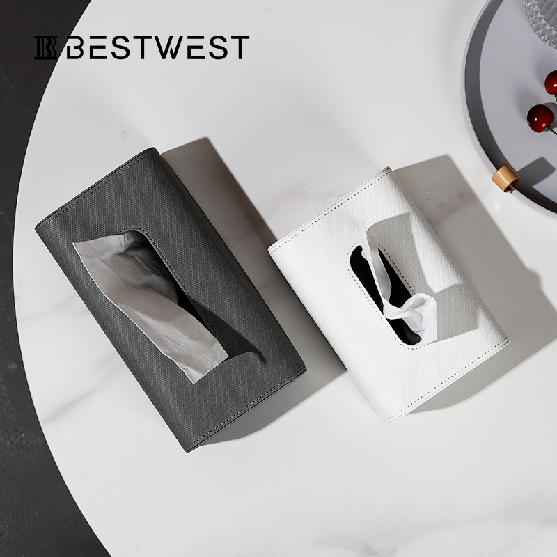 Best West Modern Simple High-end Light Luxury Leather Tissue Box Home Soft Decoration Bedroom Desktop Tissue Box
