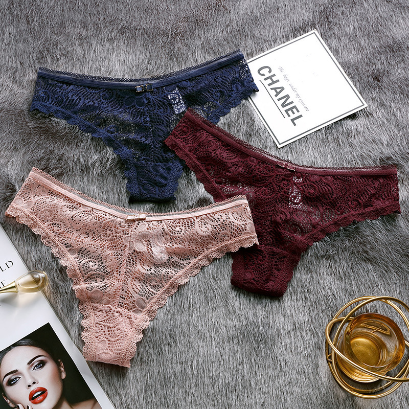 European And American Sexy Lace Thong,Ice Silk,Sexy Hollow Temptation,Hot See-through Low-waisted T-pants Underwear For Women,Pure Desire