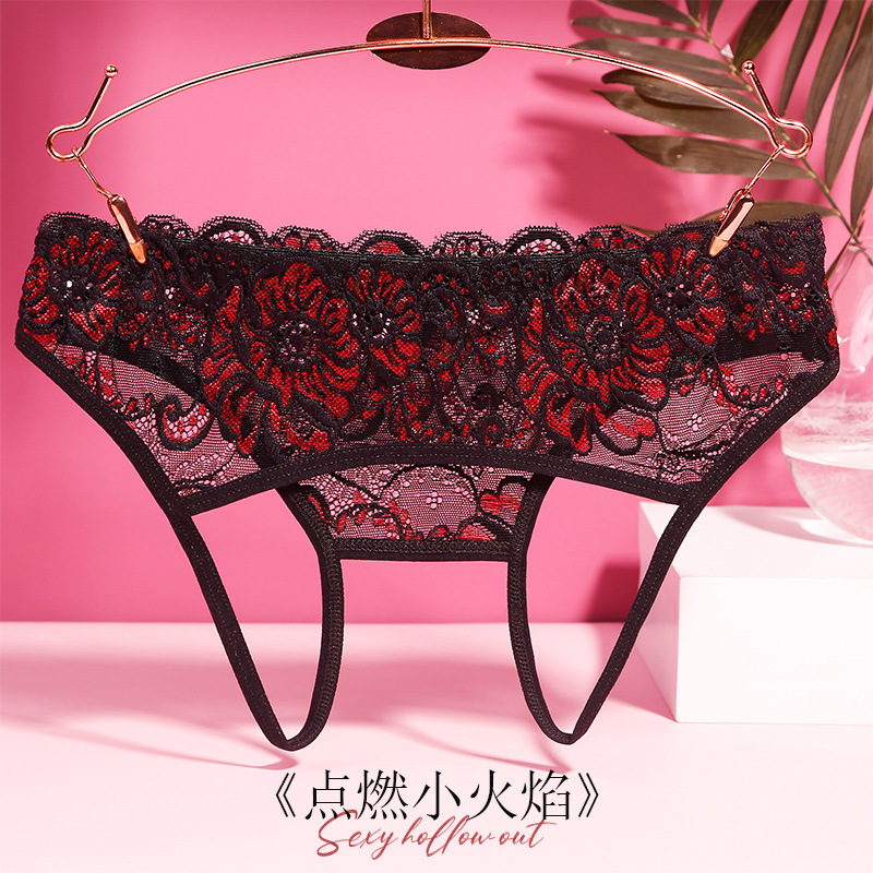 Underwear Feminine Charming Sexy Underwear Girls Embroidered Thong Open Crotch Lace Temptation Thin Section1523