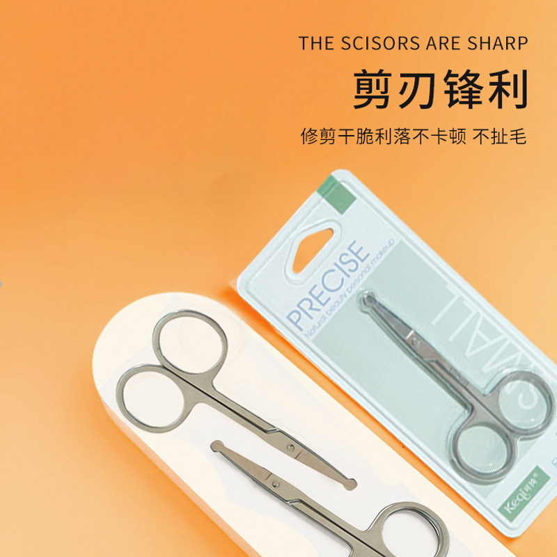 Keqi Multifunctional Beauty Scissors Stainless Steel Scissors Eyebrow Trimming Nose Hair Scissors Round Tip Pointed Safety Scissors