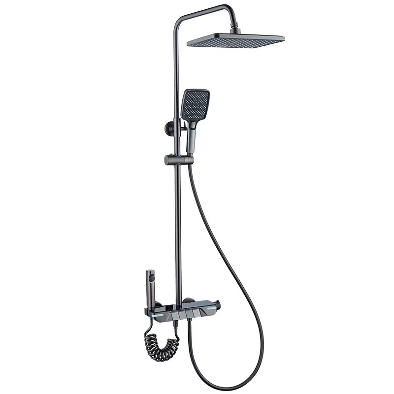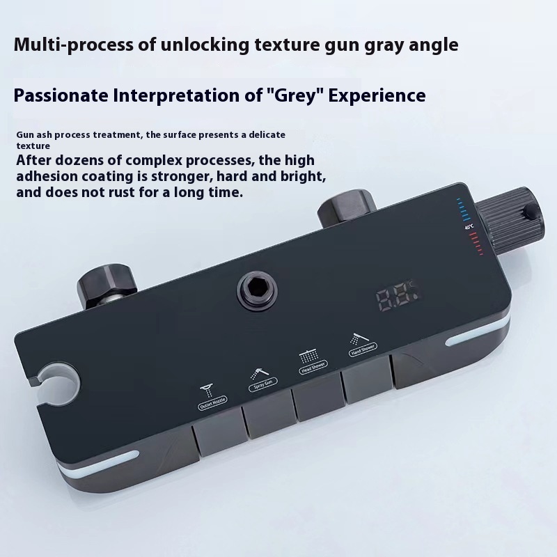 L E D Digital Display Piano Button Shower Set Home Bath Shower Gun Gray Four-function Constant Temperature Shower
