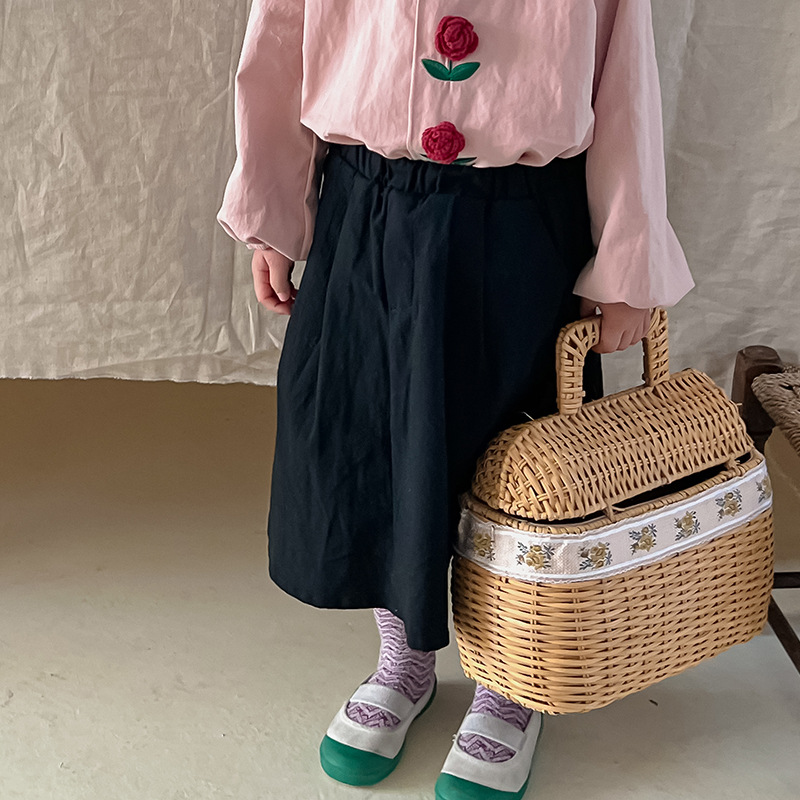 Spring Dudu Cream Girls Skirt Western Style Cotton And Linen Children's Skirt For Outerwear