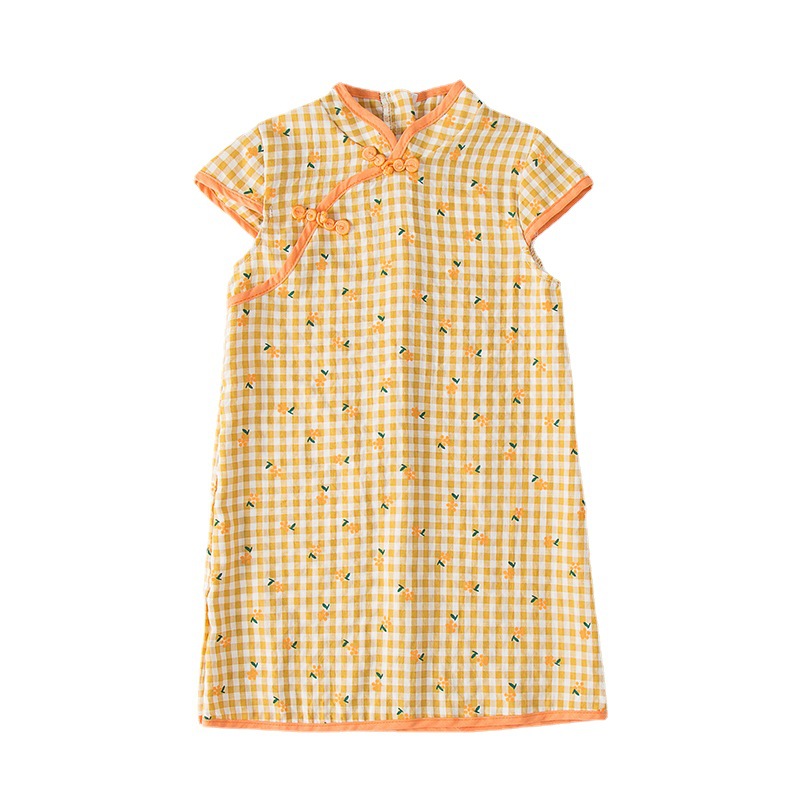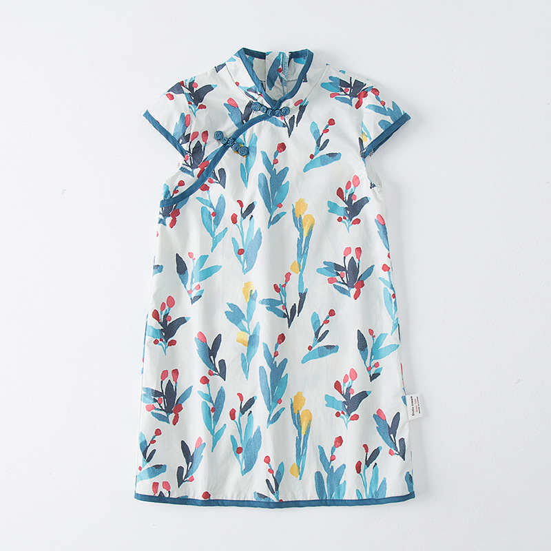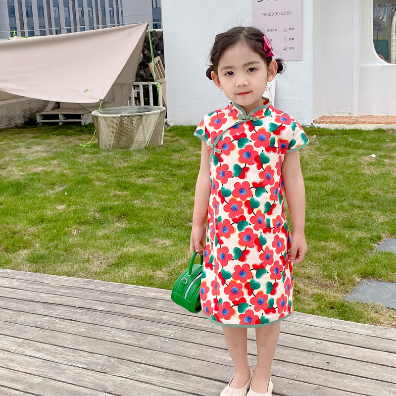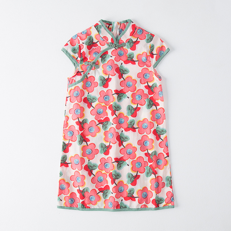 Summer Chinese Style Girls'Cheongsam Ethnic Style Retro Floral Children's Dress