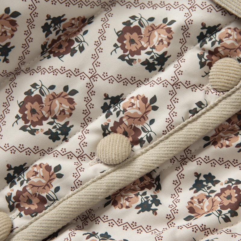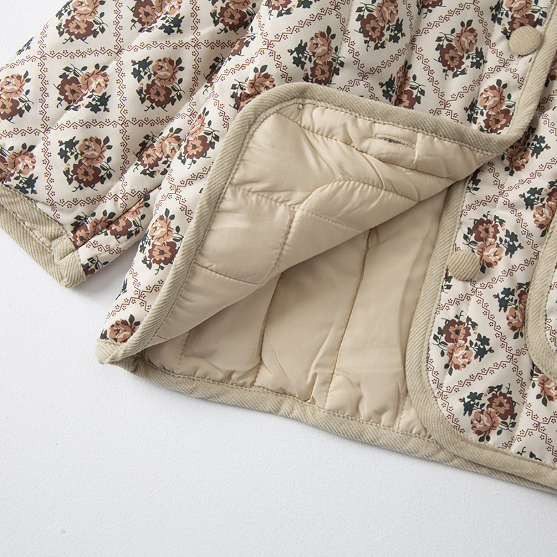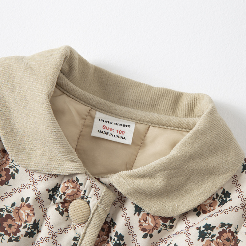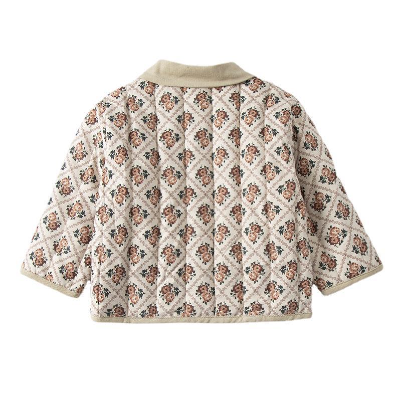 Retro Style Girls'Cotton-padded Coat Winter Thickened Quilted Children's Style Coat Baby Outer Cotton-padded Jacket