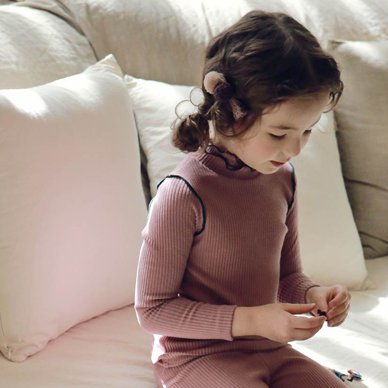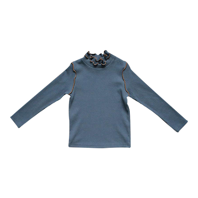Spring Girls Long Sleeve Shirt Strawberry Shan Korean Version Girls Solid Color Cotton Hollow Stripe Wavy Neck T-Shirt In Stock