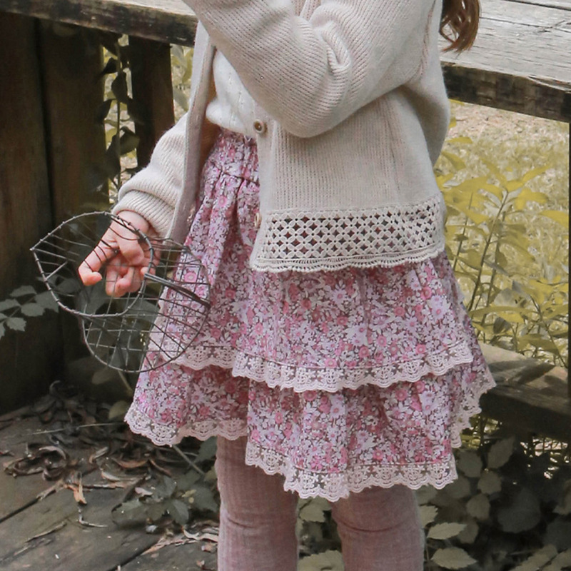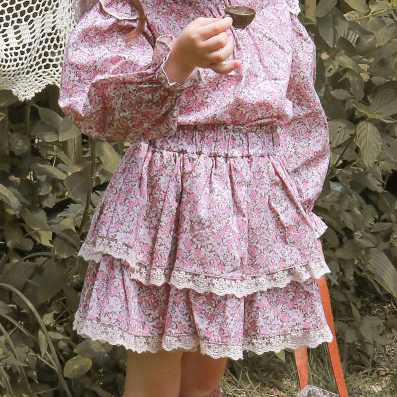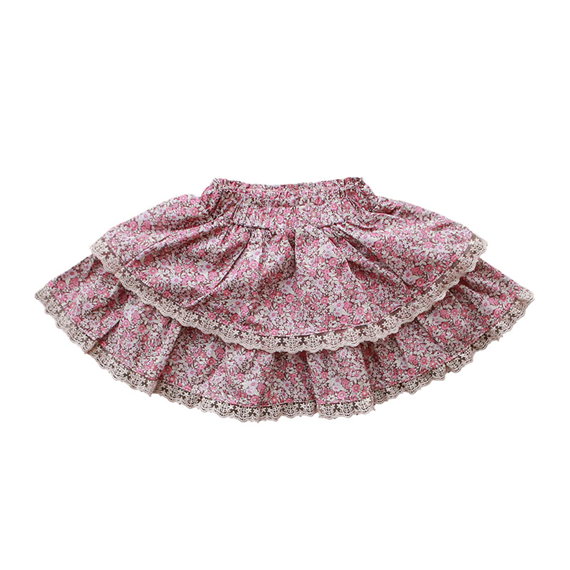 Spring Strawberry Shan Korean Children's Clothing Children's Girls Fashionable Floral Skirt Double Layer Lace Short Skirt Ready In Stock